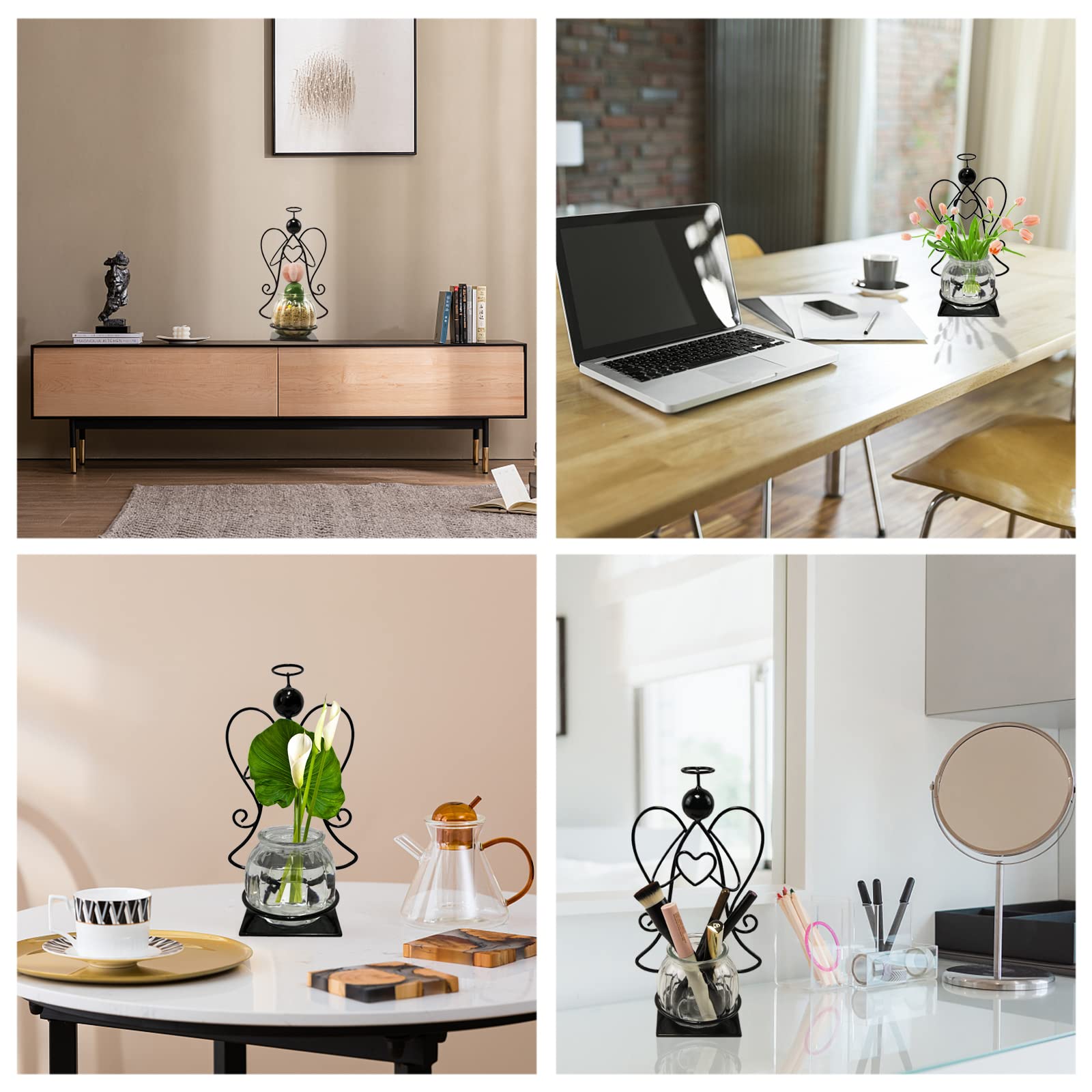 Angel Plant Terrarium with Metal Stand, Air Planter Bulb Glass Vase Metal for Hydroponics Home Garden Office Decoration-Plant Lover's Gift for Women (Angel)