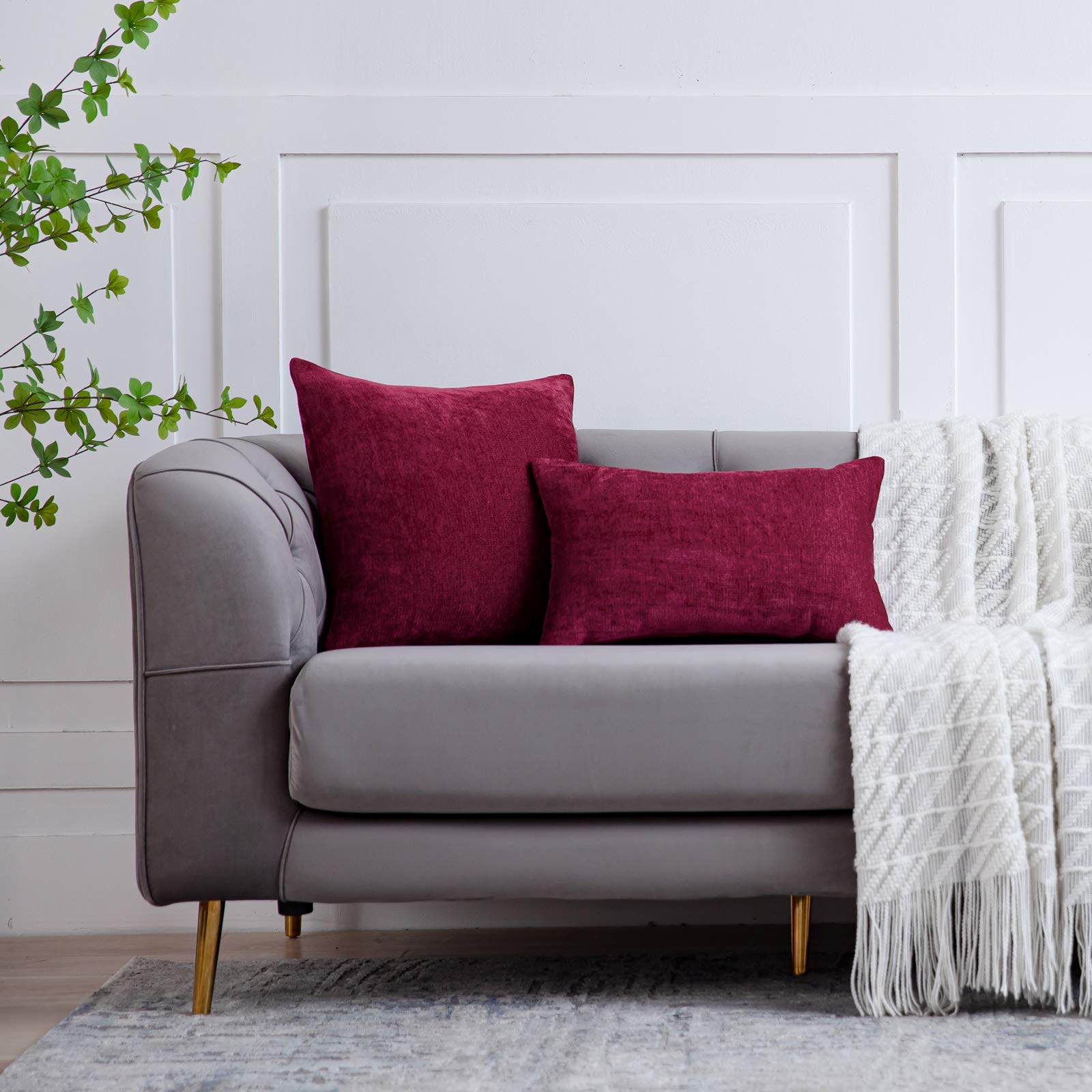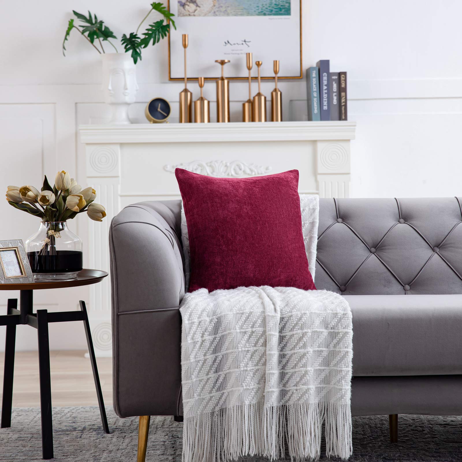 Anickal Valentines Marron Pillow Covers 18x18 Inch Set of 2 Solid Rustic Farmhouse Decorative Throw Pillow Covers Square Cushion Case for Home Sofa Couch Decoration