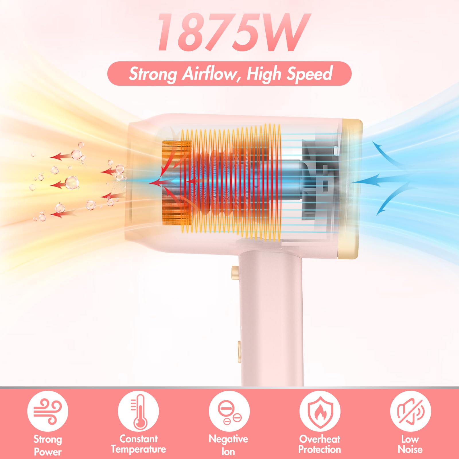 - 【1875 Watt Powerful Motor for Fast Drying】ANIEKIN hair dryer is equipped with a 1875W power and high rotating speed to output strong and smooth airflow effortlessly. Combined with the constant temperature, the blow dryer ensures fast drying and styling to provide efficient protection and optimal care for your hair.