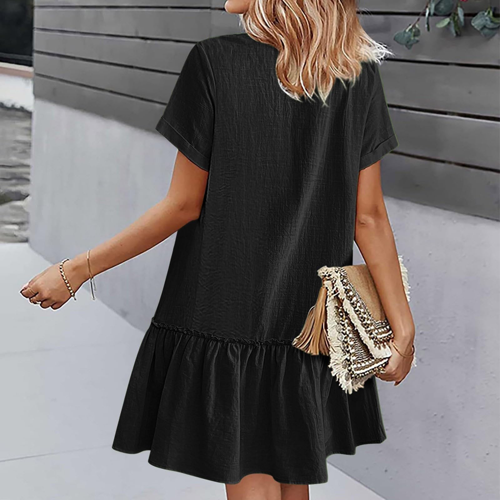 Aniywn Button Dresses for Women 2024 Casual Loose Summer Cotton Linen Dress Ruffle Hem Casual Dress Short Sleeve Tunic Dress