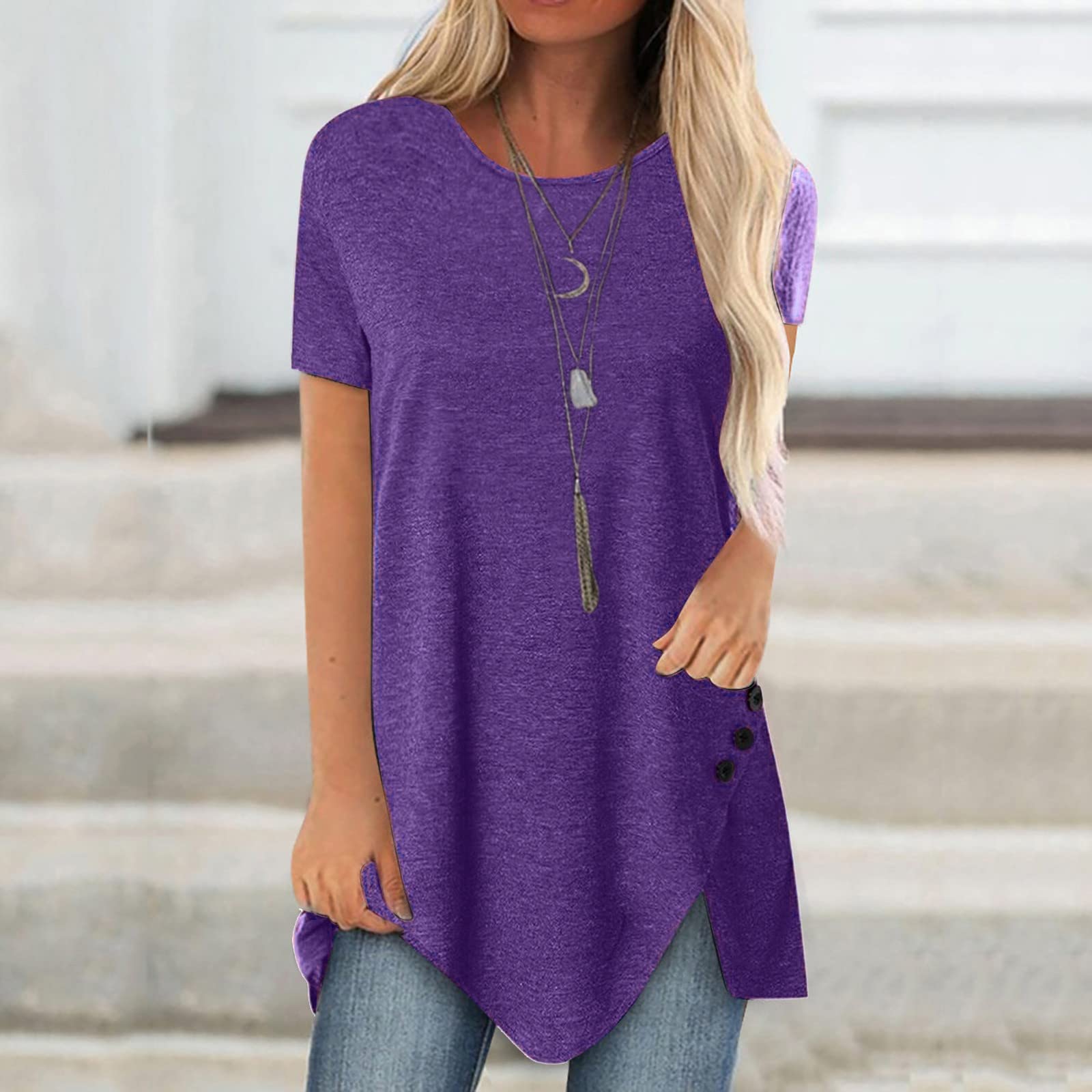 Aniywn Women's Plus Size Sweatshirt Tops Ladies Baggy Short/Long Sleeve Thin Solid/Printing Pullover Blouse T Shirts