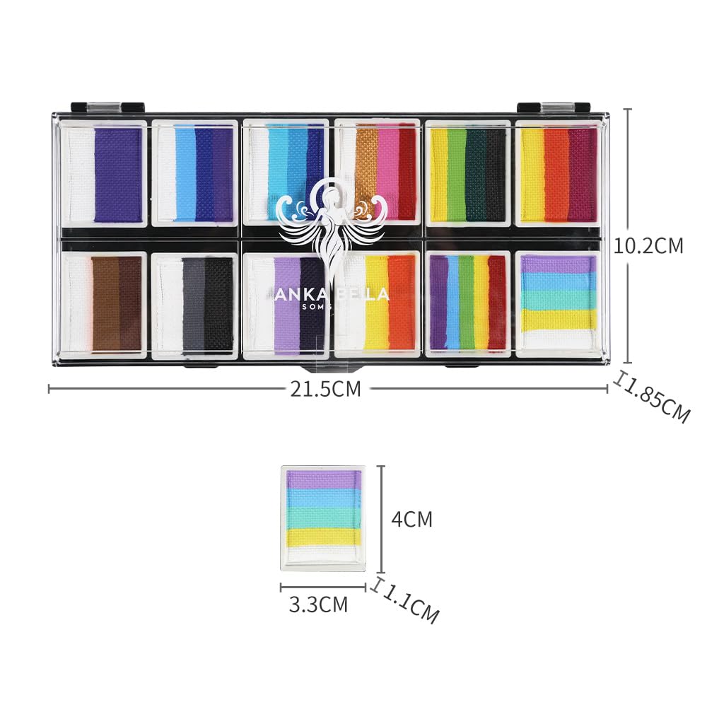 - 🌸【Pro Quality for Sensitive Skin】 Anka Bella rainbow cake face paint kit is vegan, non-toxic, also is paraben, lanolin, gluten and perfume free. This hypoallergenic washable body and face paint is safe for kid and adult with sensitive skin.