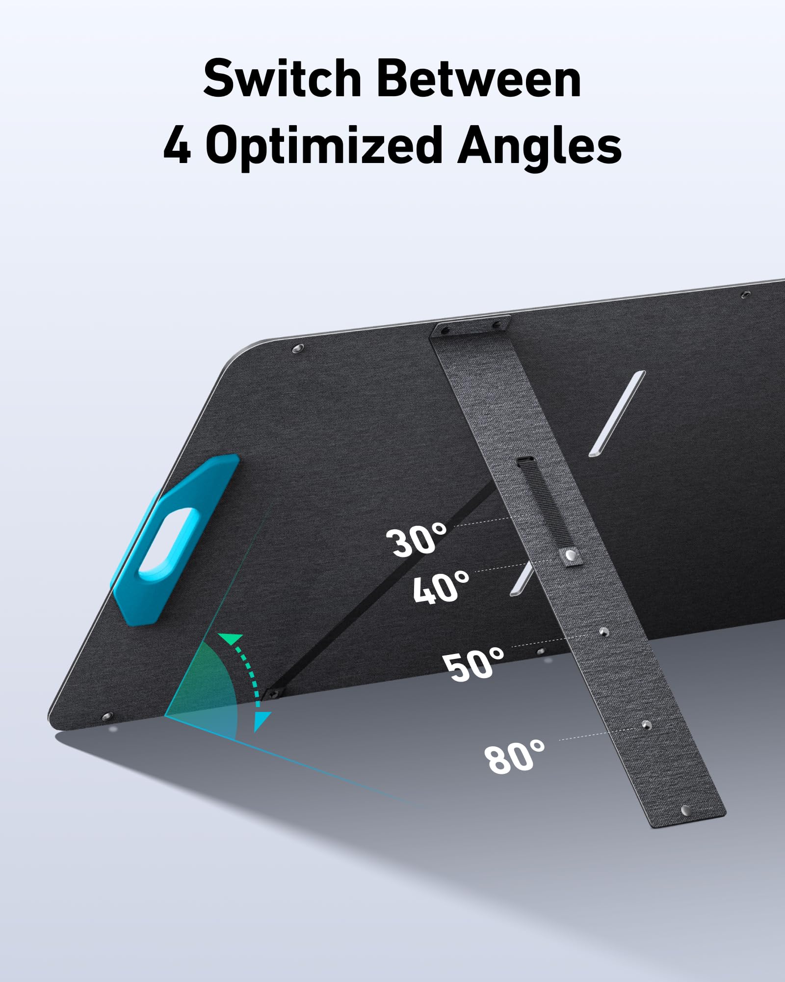 - 4 Set Angles for Max Sunlight Absorption: No matter where you are, the season, or time of day, you can maximize sunlight absorption. Easily switch between 30°, 40°, 50°, or 80° angles.