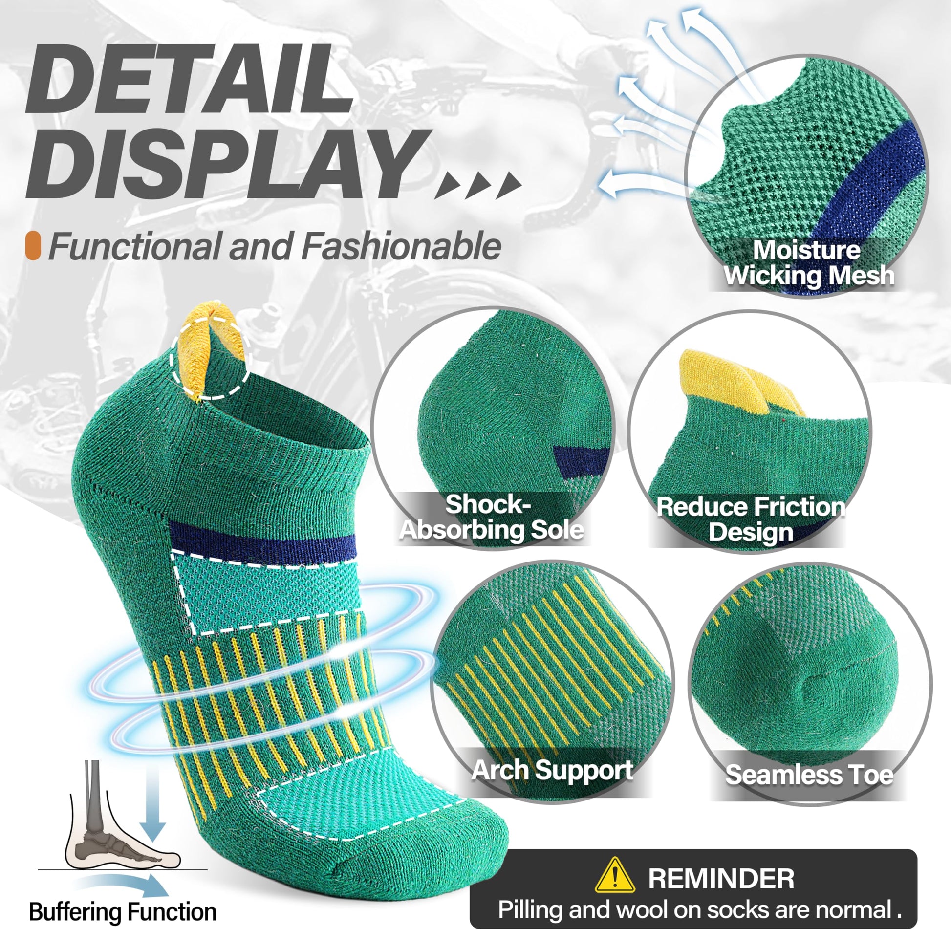 - PROTECTION FOR FEET - These womens wool running ankle socks have stretchy cuff and arch support, which can have great compression support to reduce fatigue, protect the Achilles tendon, improve the blood circulation, and keep socks fit snugly. Cushioned sole absorbs shock and reduces risk of blistering. Pull tab resist abrasion and prevent slipping. All of these provide more protection for your feet.