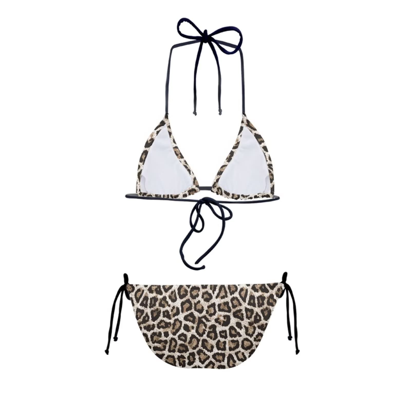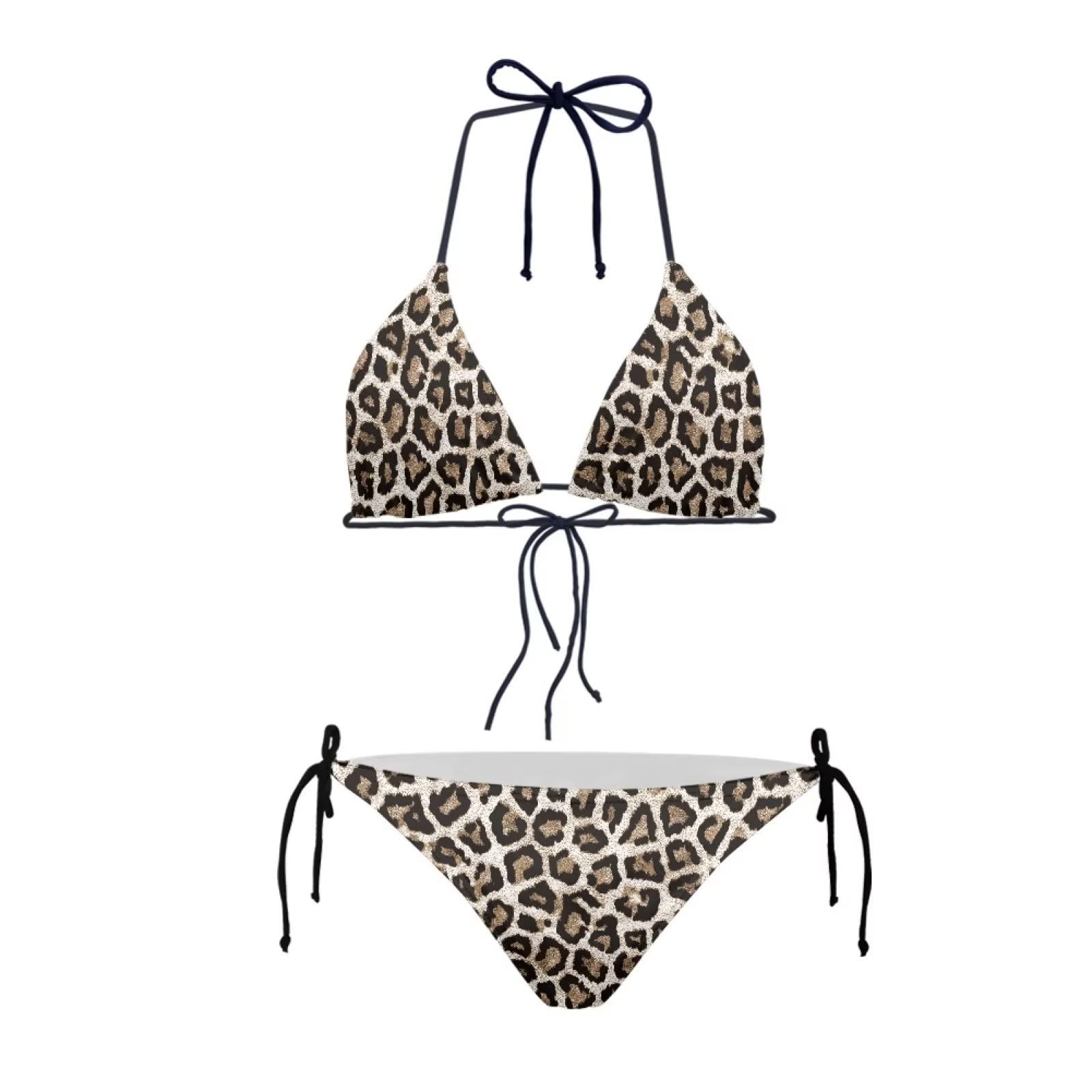 Annejudy Cheetah Print Women Two Piece Bikini Swimsuit Leopard Sexy Bathing Suits Halter Triangle Tops String Bikini Sets Quick Drying Beachwear