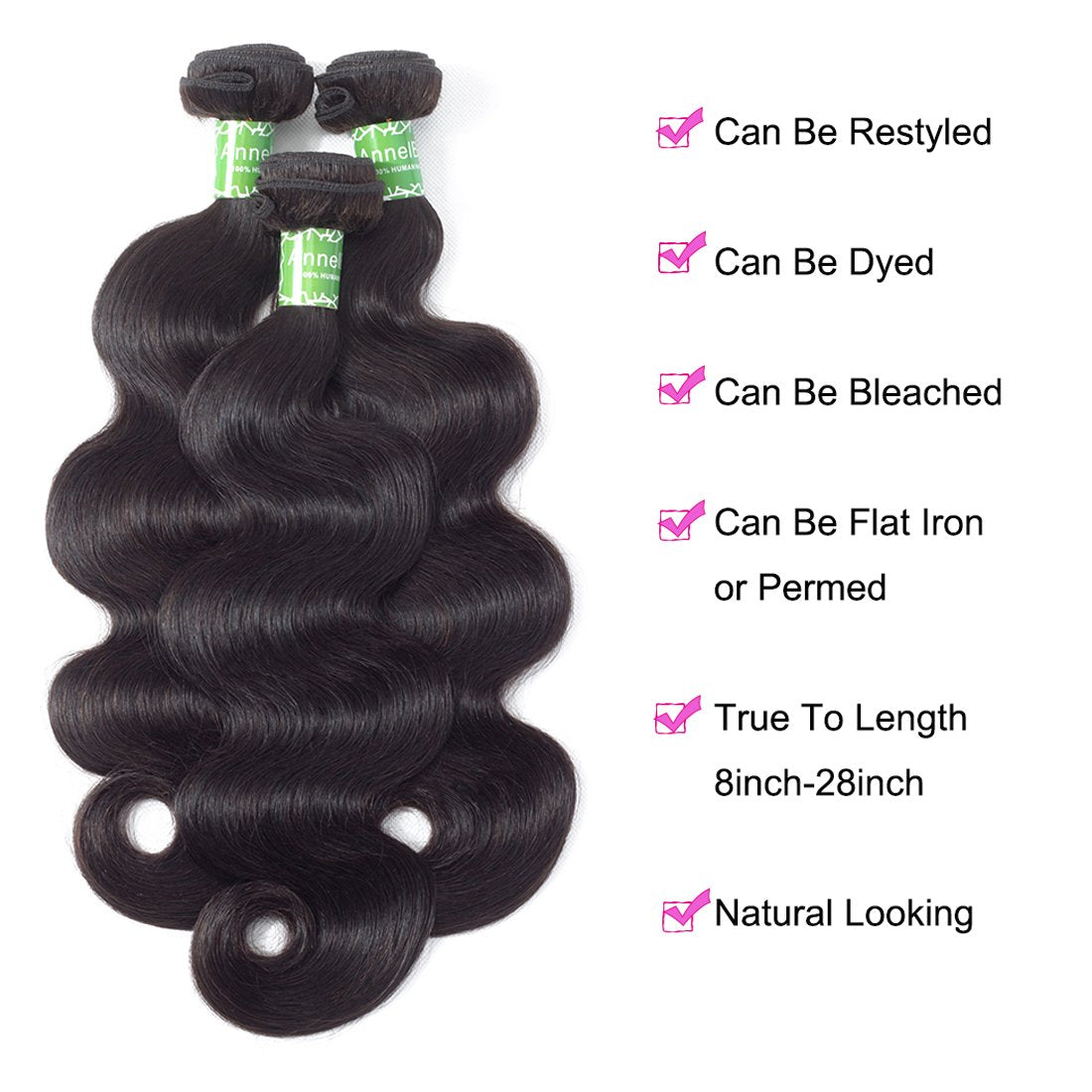- Hair Quality: ANNELBEL Provide HIGH Quality Brazilian Virgin Hair Human Hair Body Wave. Can be Bleached and Dyed, Permed and Styled, Double Strong Weft, Tight and Neat, No Tangle No Shedding, Healthy & No Smell