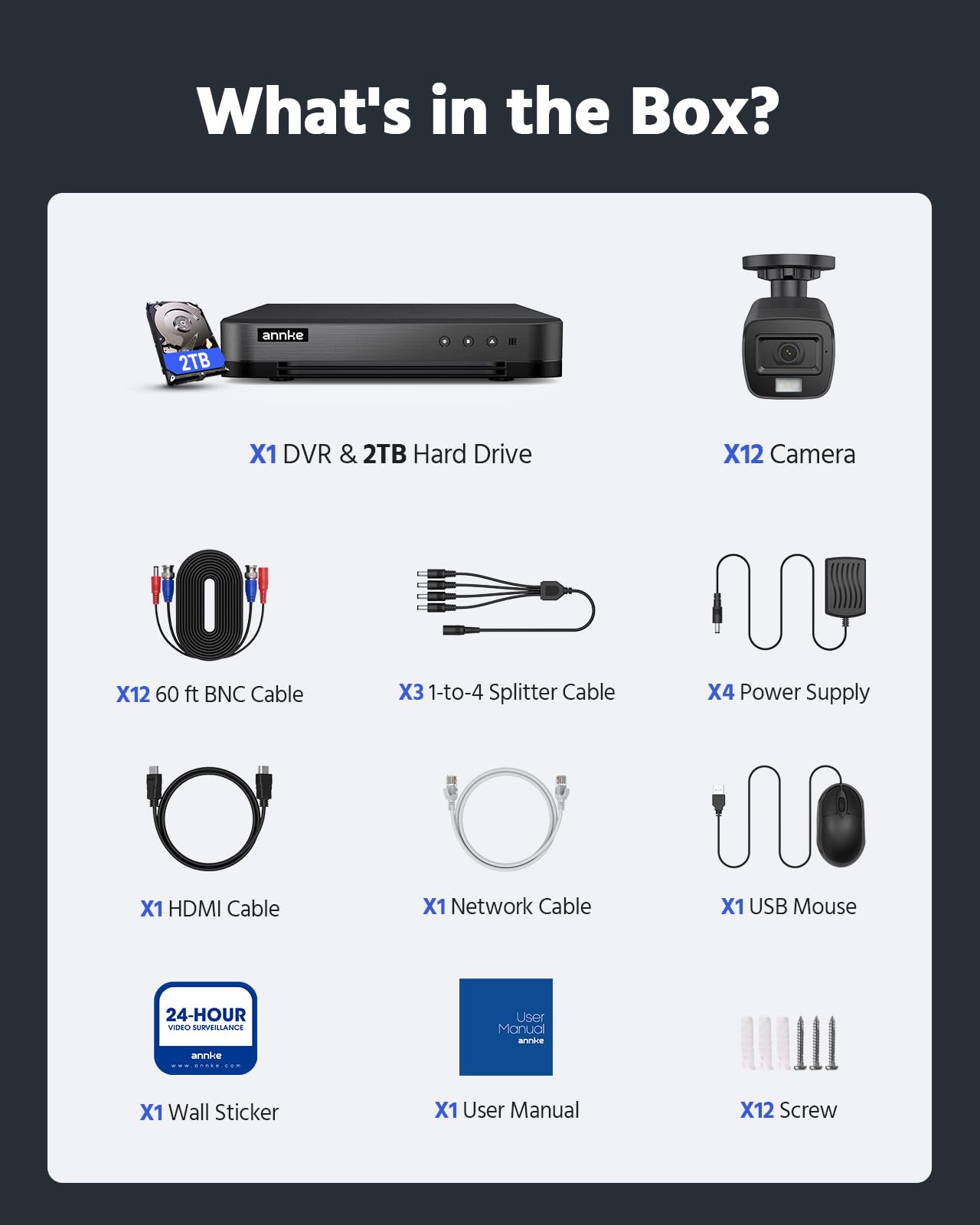 ANNKE 16 Channel Security Camera System HD-TVI 1080P Lite Video DVR and (12) 2.0MP Outdoor IP67 Cameras with Smart Dual Light, AI Human/Vehicle Detection, Color Night Vision, 2 TB Hard Drive
