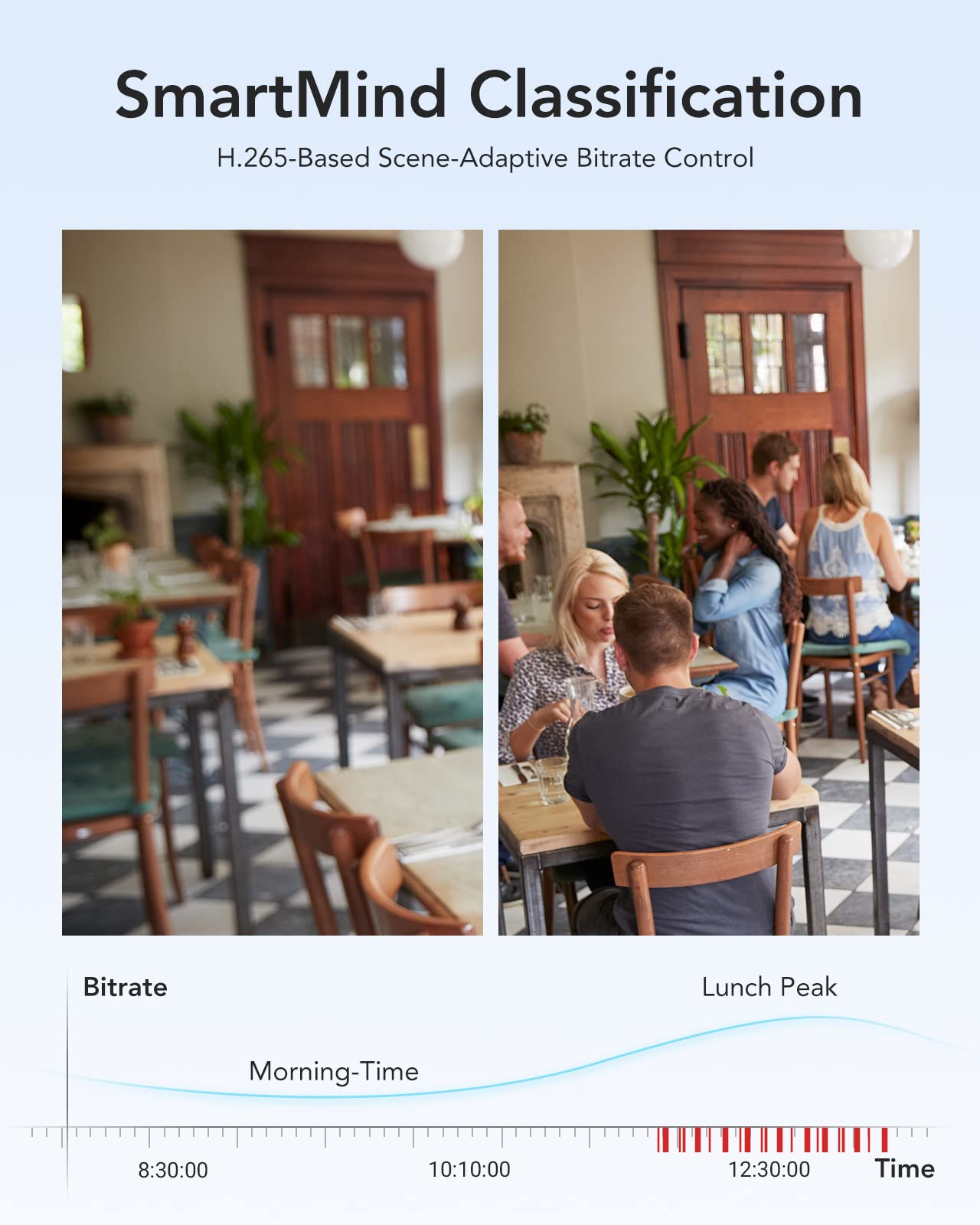 - Smart Bitrate Control: The 8 channels DVR uses algorithms to adapt a high/low bitrate whether the scene is complex with human/vehicle, avoiding hassles in setting. The H.265 video compression and 1TB eSSD promise a longer recording