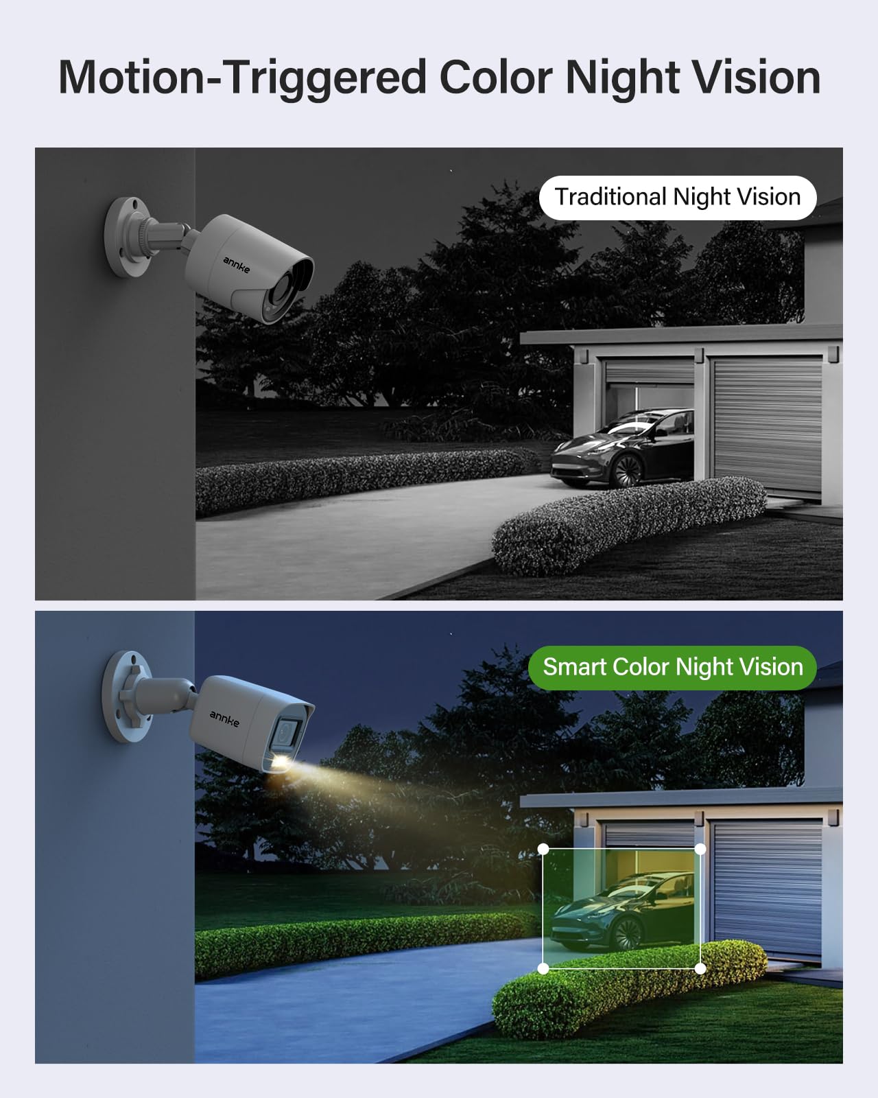 - Smart Dual-Light Effectively Guard Your Home: This newly upgraded security system offers you a crisp full color night vision, IR mode and color night vision switch flexibly. Once detect intruders, immediate pushes pop up on your phone, securing your peace of mind day&night.