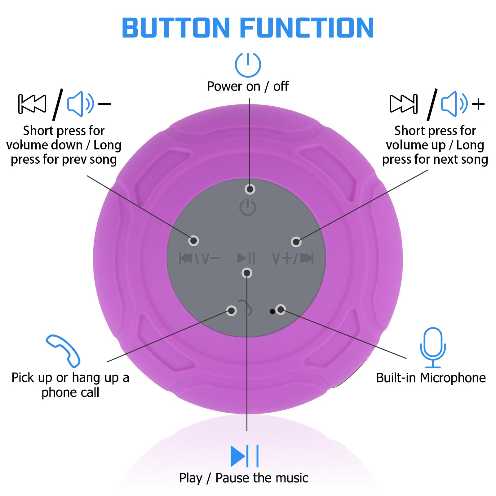 - ✔Portable Bluetooth Shower Speaker - Don't let the water stop you from enjoying your favorite music. Allow you to use it at any where or any time you like (In bathroom, kitchen,beach, swimming pool, wash room, on boat.)