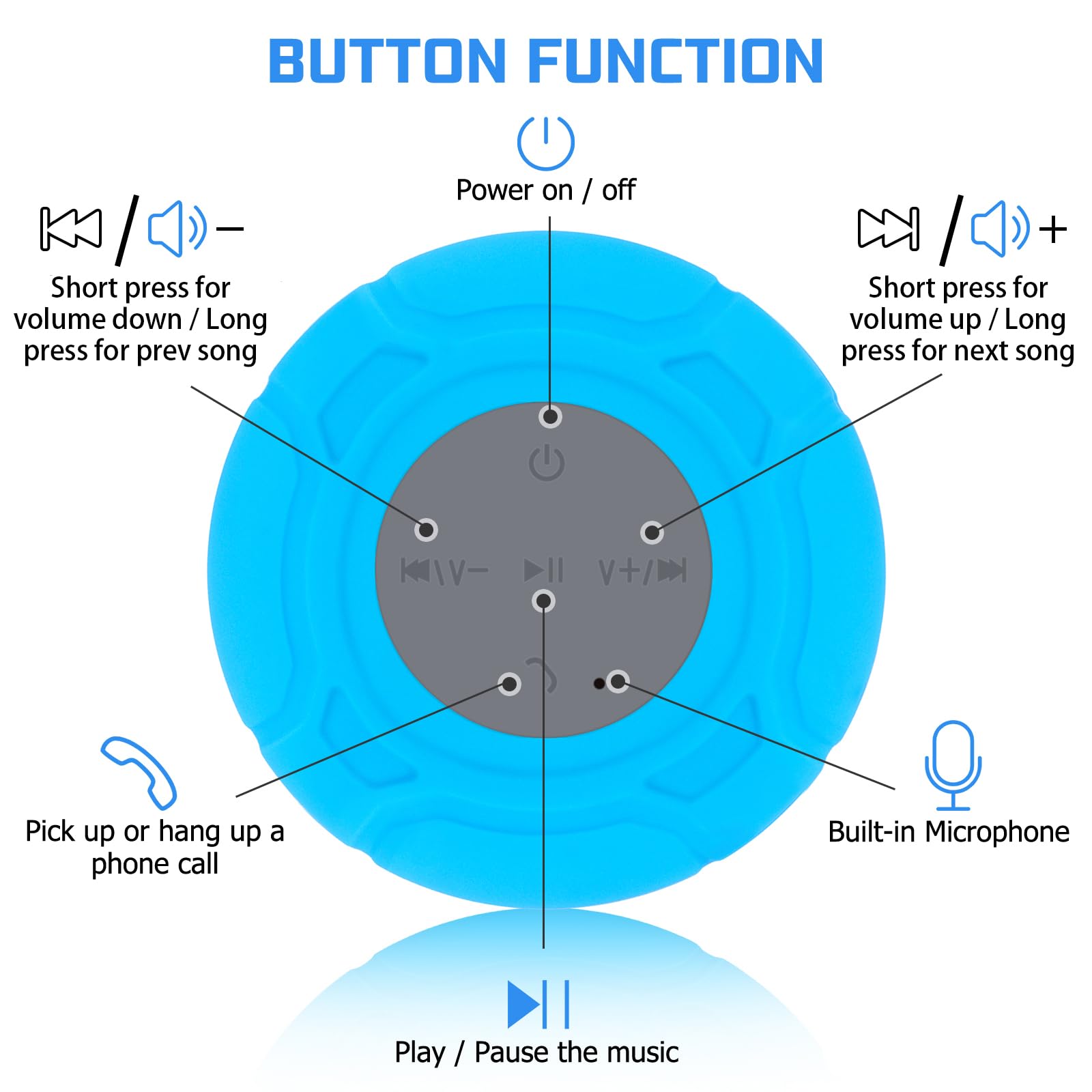 - Bluetooth Shower Speaker Waterproof - Don't let the water stop you from enjoying your favorite music. Allow you to use it at any where or any time you like (In bathroom, kitchen,beach, swimming pool, wash room, on boat.)