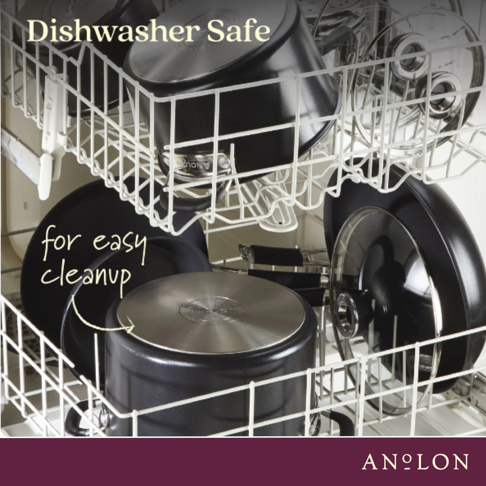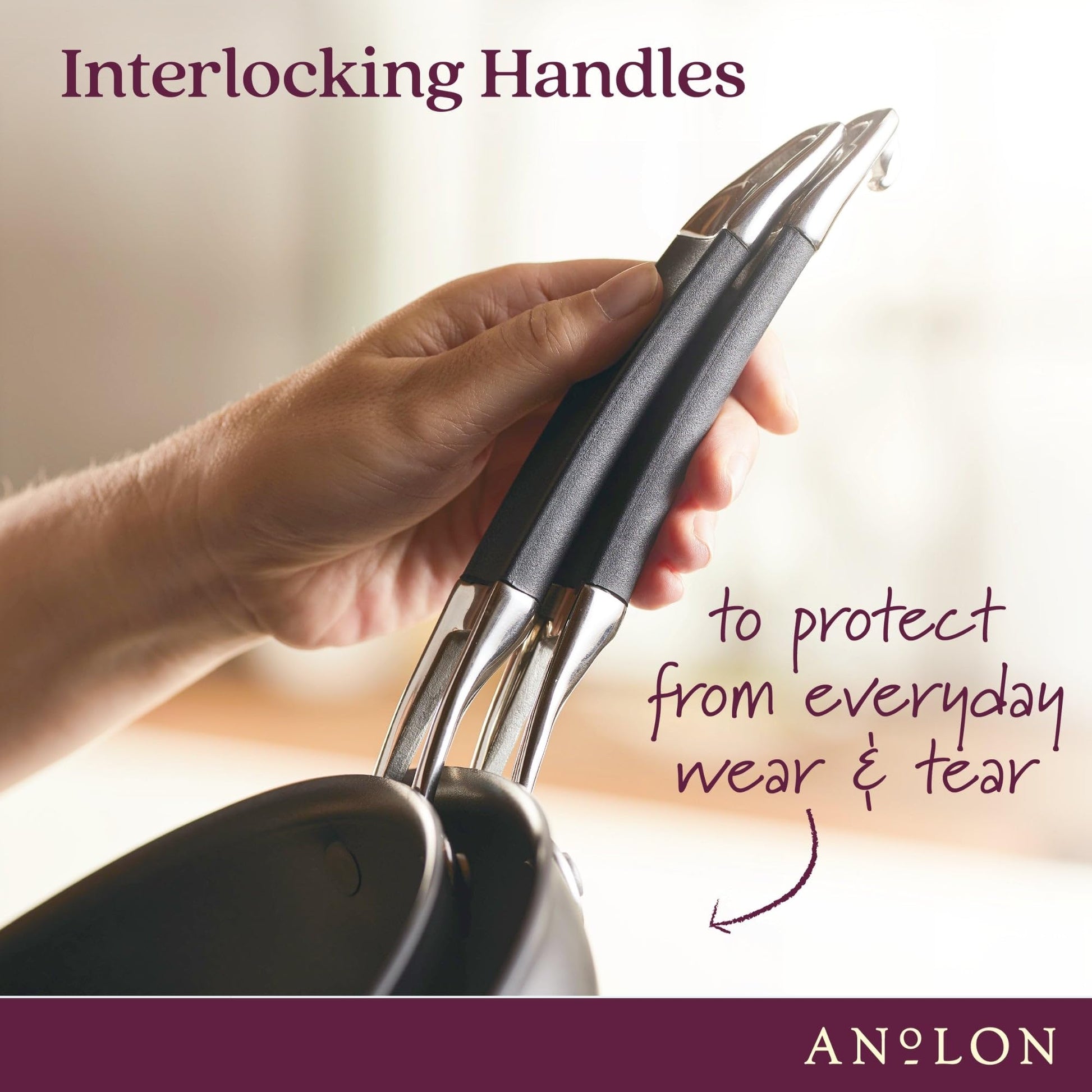 - LOCK AND LOAD: Protect your nonstick from everyday wear and tear. When Anolon SmartStack cookware pieces stack together, the patented interlocking handles prevent nonstick surfaces from scratching against each other.