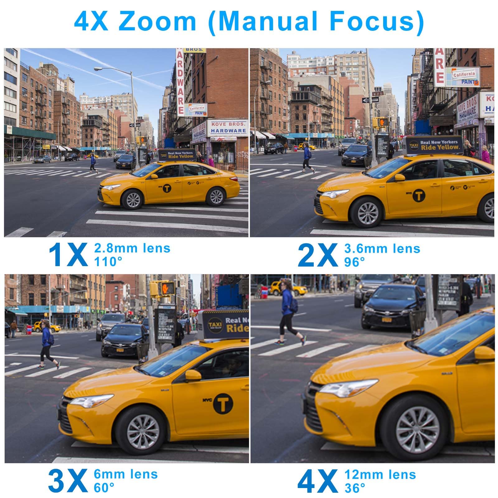 - 2.8-12mm 4X Manual Varifocal Lens, Full Metal Case for Vandalproof and Weatherproof: With 36pcs IR infrared LEDs, it has 98ft IR range, take clear picture during both day and night time. IP66 weatherproof housing provides protection from elements, including dust and sand, as well as harsh weather conditions, such as rain and snow.