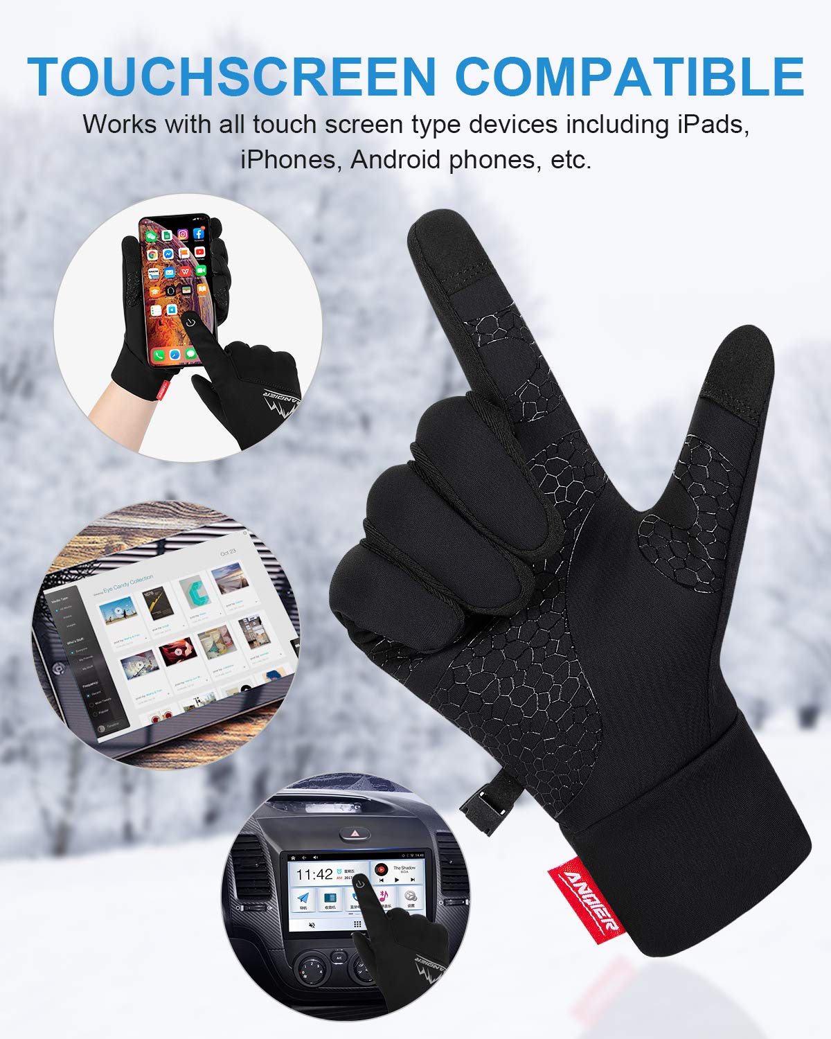 anqier Winter Gloves, Windproof Warm Touchscreen Gloves Men Women for Cycling Running Outdoor Activities
