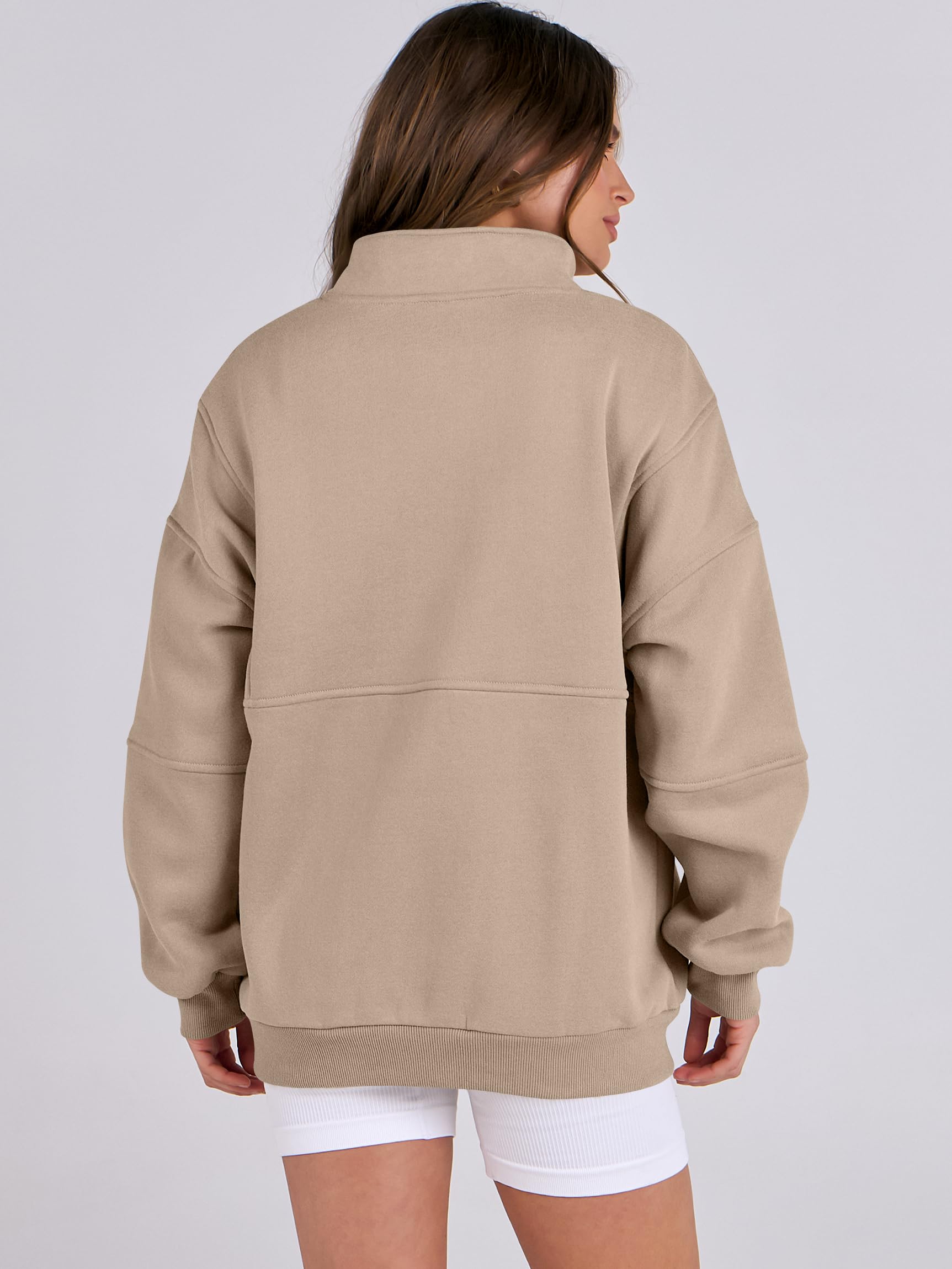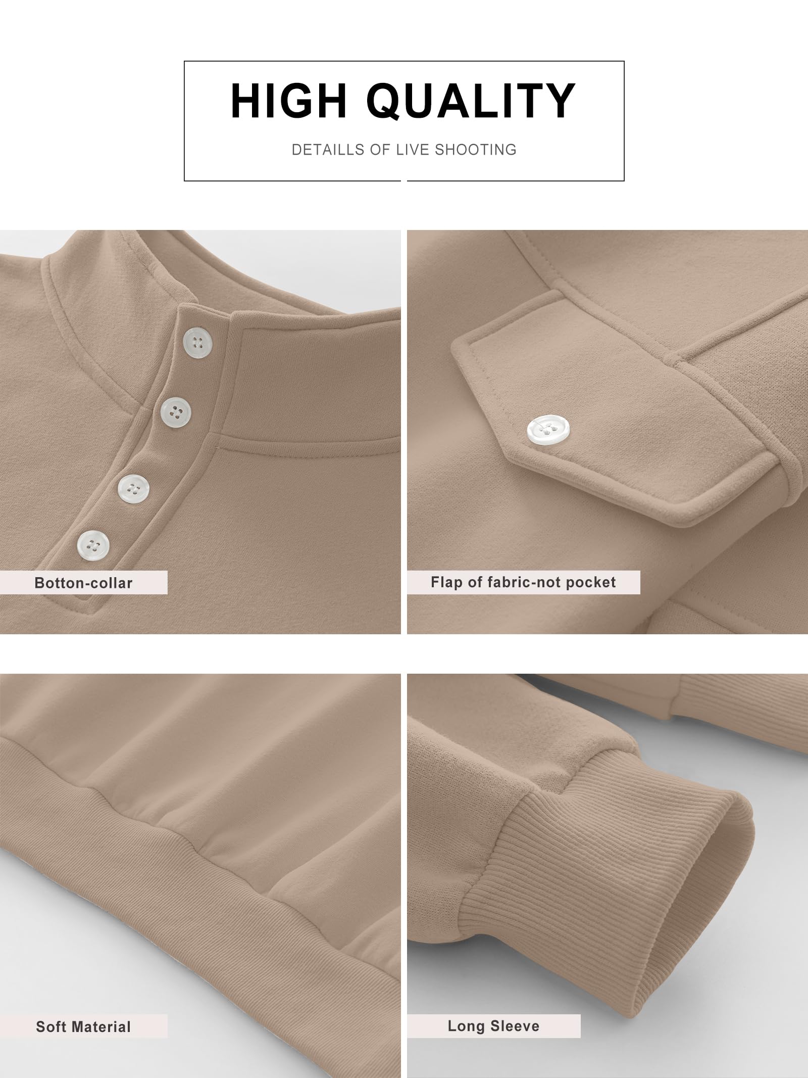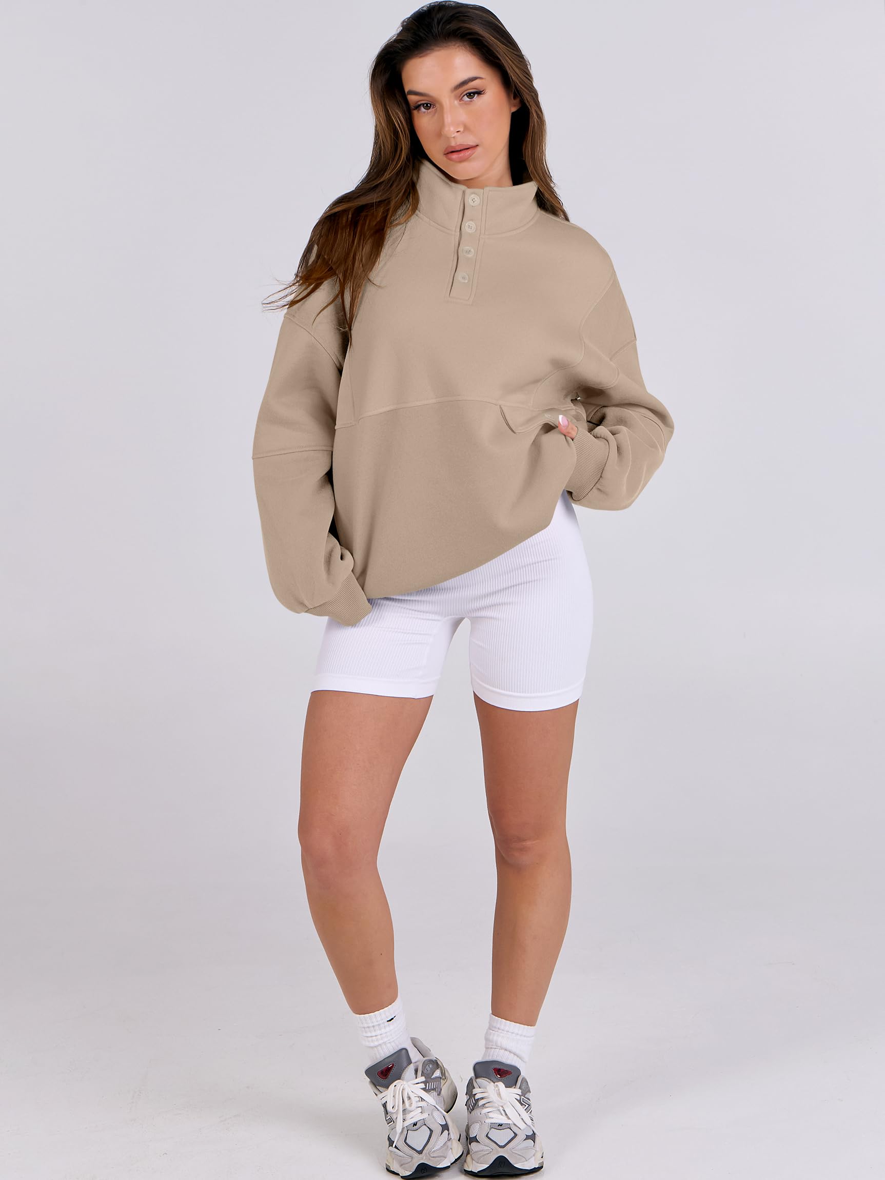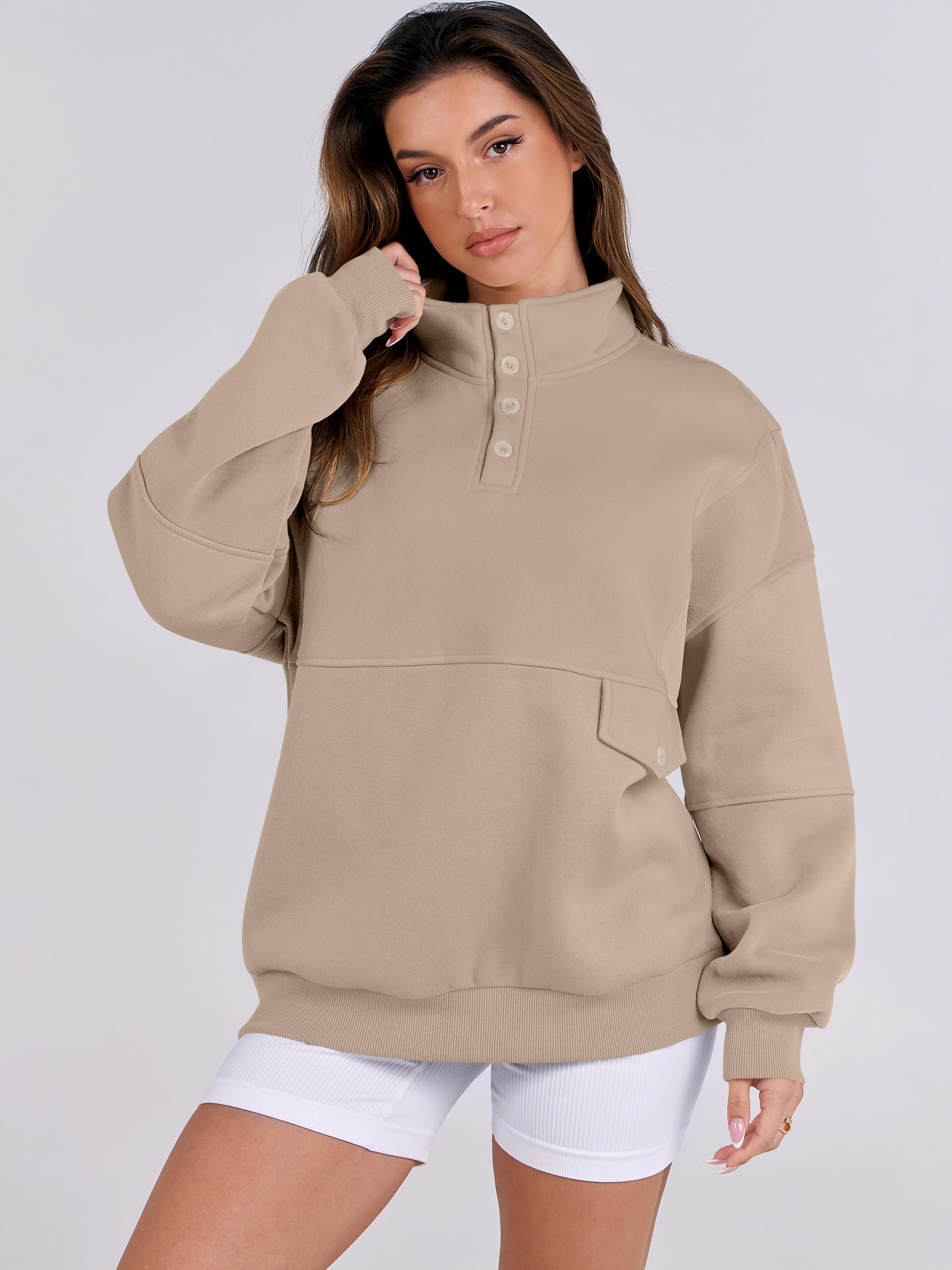 ANRABESS Women Oversized Sweatshirts Long Sleeve Color Block/Solid Button Fleece Pullover Hoodie 2024 Winter Cute 90s Outfit Khaki Medium