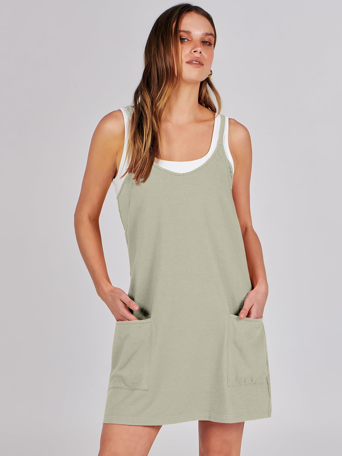 - Features - This workout mini dress build in shapewear featured spaghetti straps, V neck, patch pockets, solid color, making it perfect for staying cool and stylish during hot summer days.