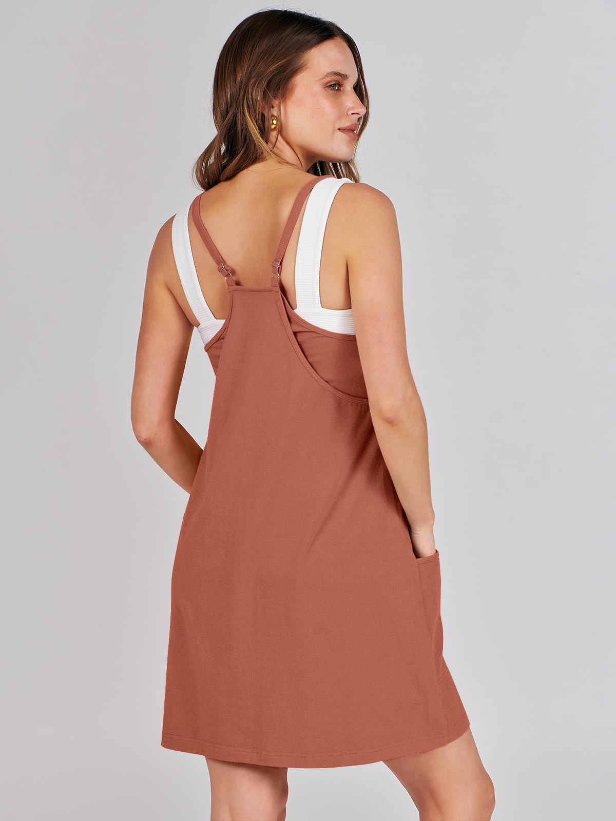 ANRABESS Women Summer Mini Romper Dress Workout Tennis Active Sports Athleisure Outfits Built in Shorts Trendy Vacation Rust X-Smal