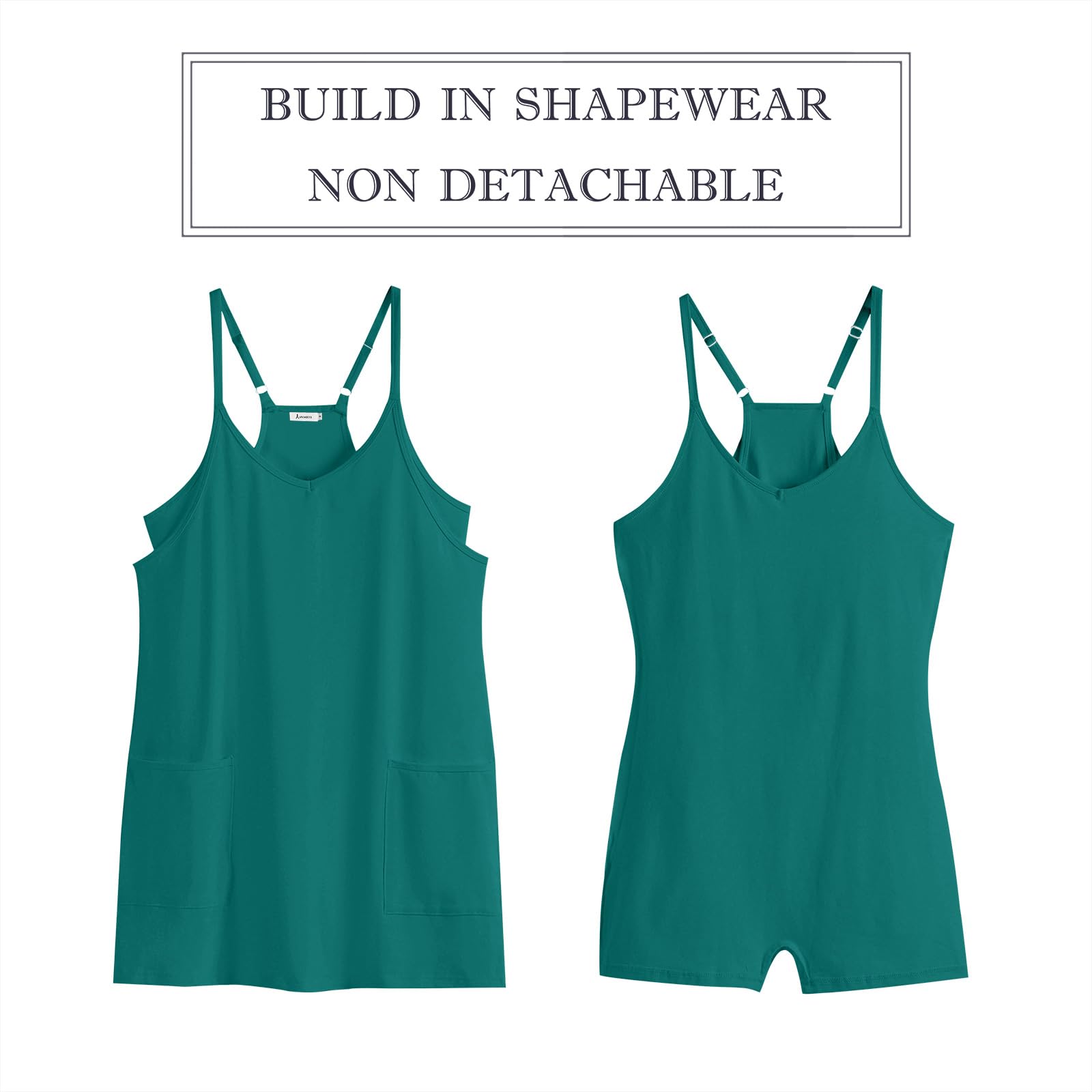 - Features - This workout mini dress build in shapewear featured spaghetti straps, V neck, patch pockets, solid color, making it perfect for staying cool and stylish during hot summer days.