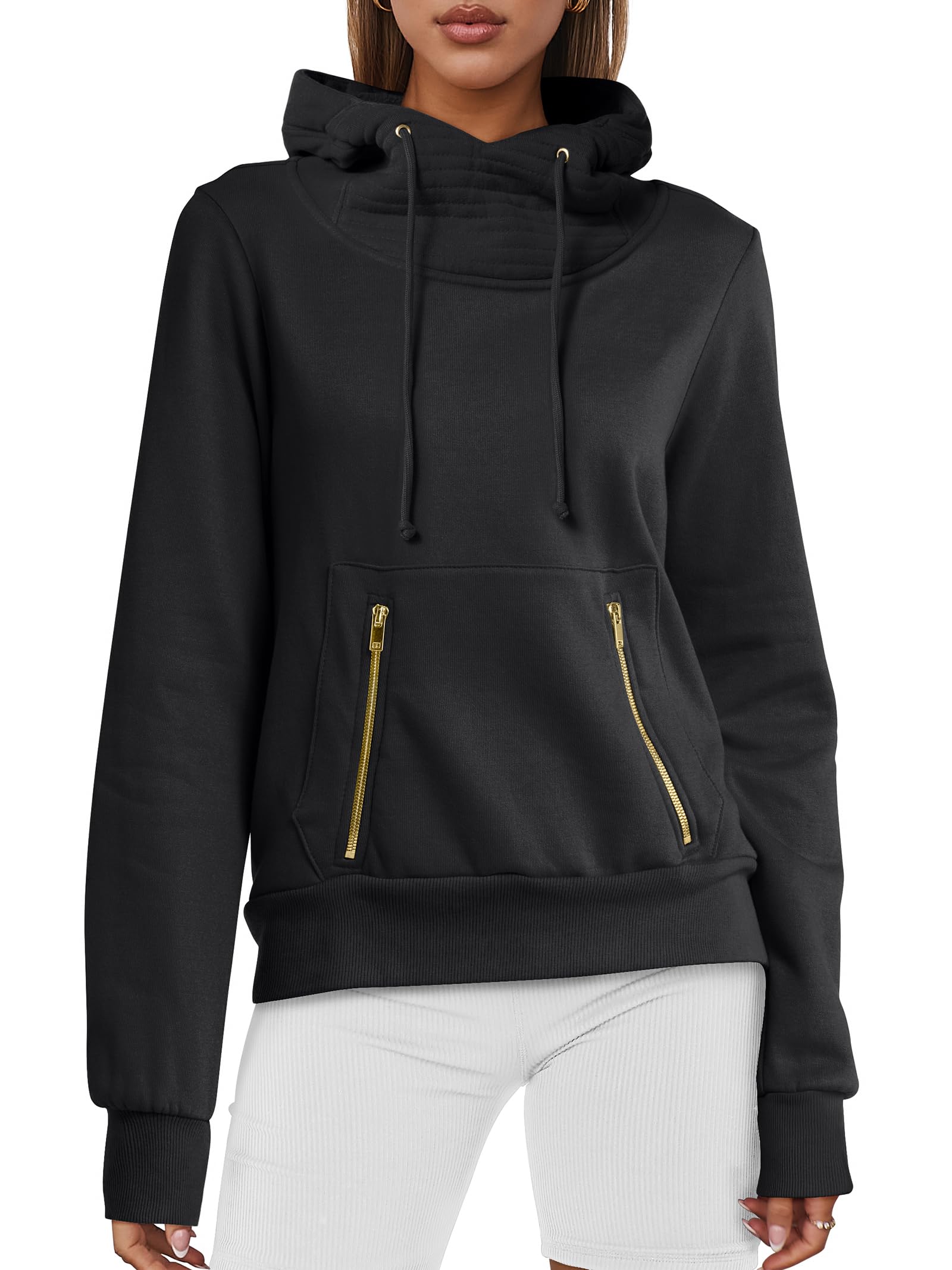 ANRABESS Womens Hoodie Cowl Neck Long Sleeve Sweatshirts 2024 Winter Fashion Pullover With Drawstring Teen Girls Clothes Black Small