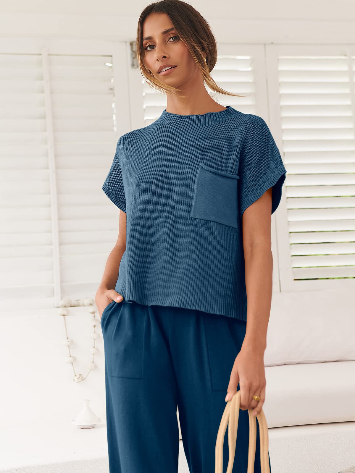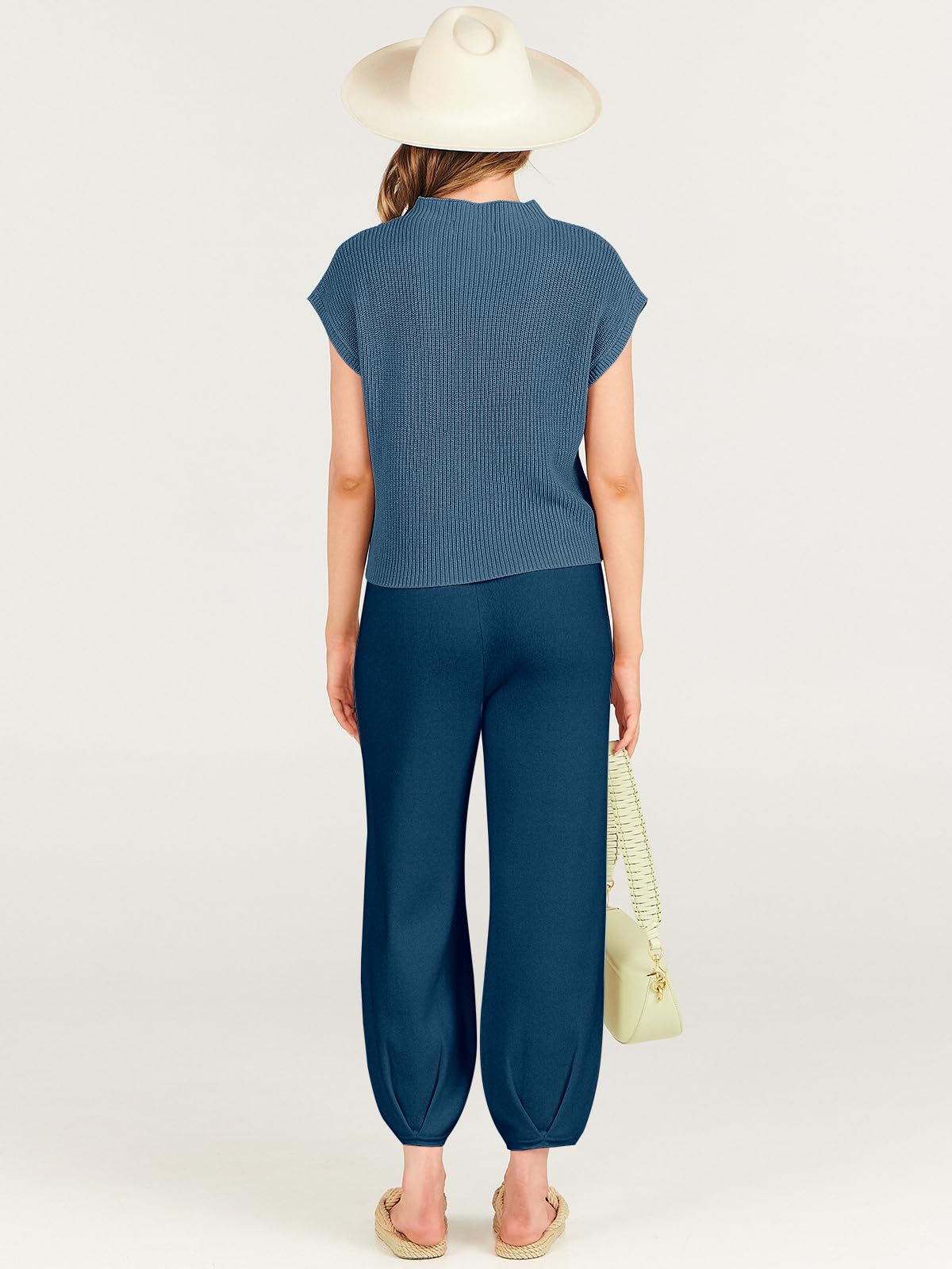 - Fashionable style - Flaunt your fashion statement with this stylish Two Piece Outfit, featuring a cap shoulder knit crop top and high waist taper knit pants for a trendy and chic look.