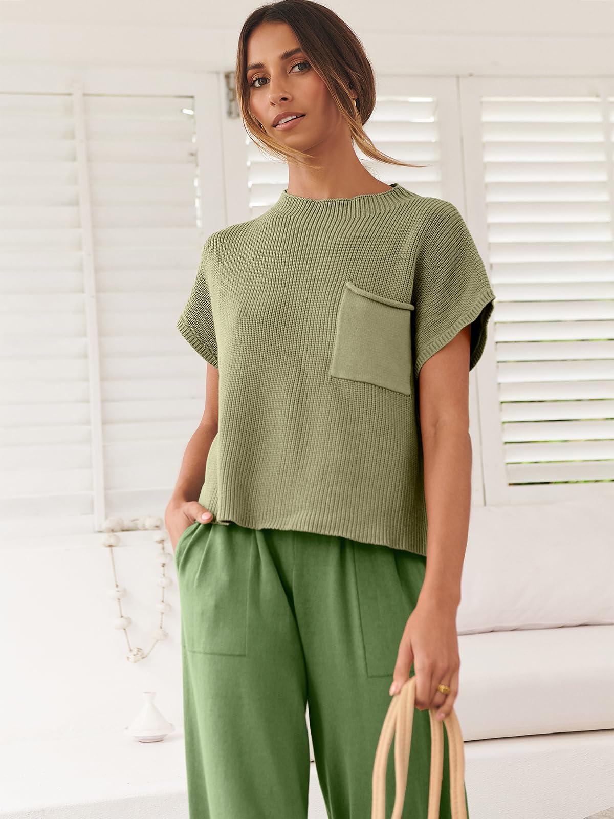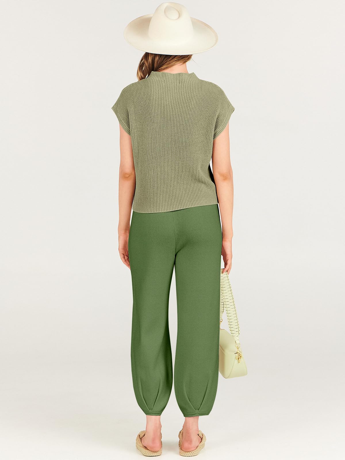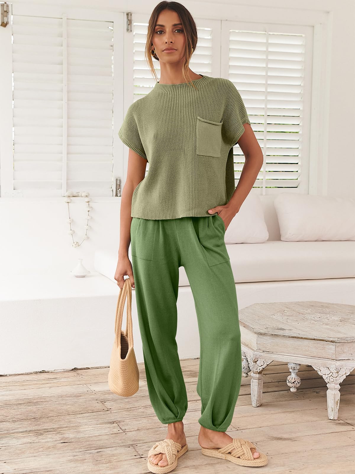ANRABESS Women's Two Piece Outfits Knit Sweater Pullover Crop Top & Pants Lounge Matching Tracksuit Sweatsuit Sets 2024 Trendy Loungewear Clothes Grass X-Small