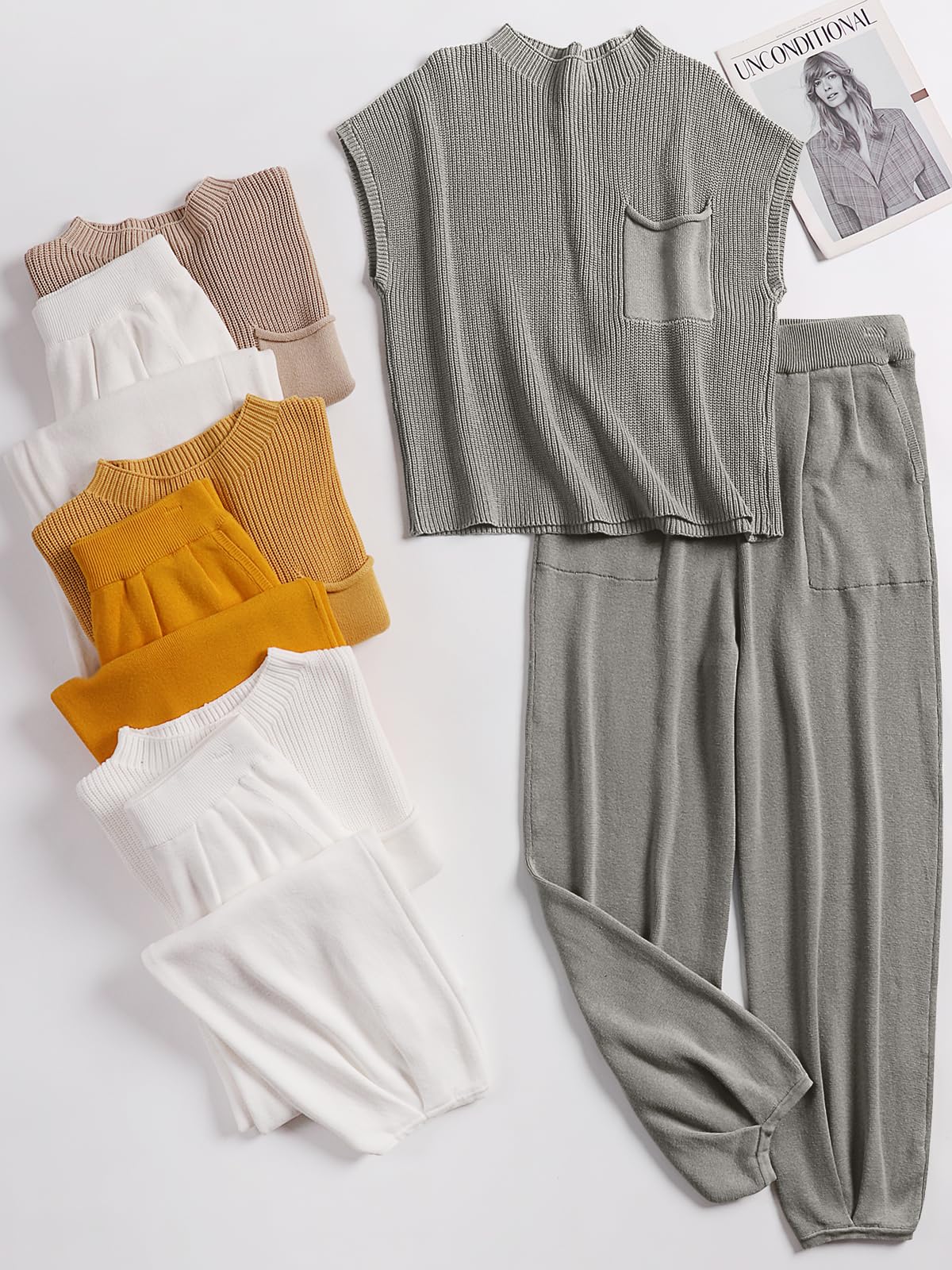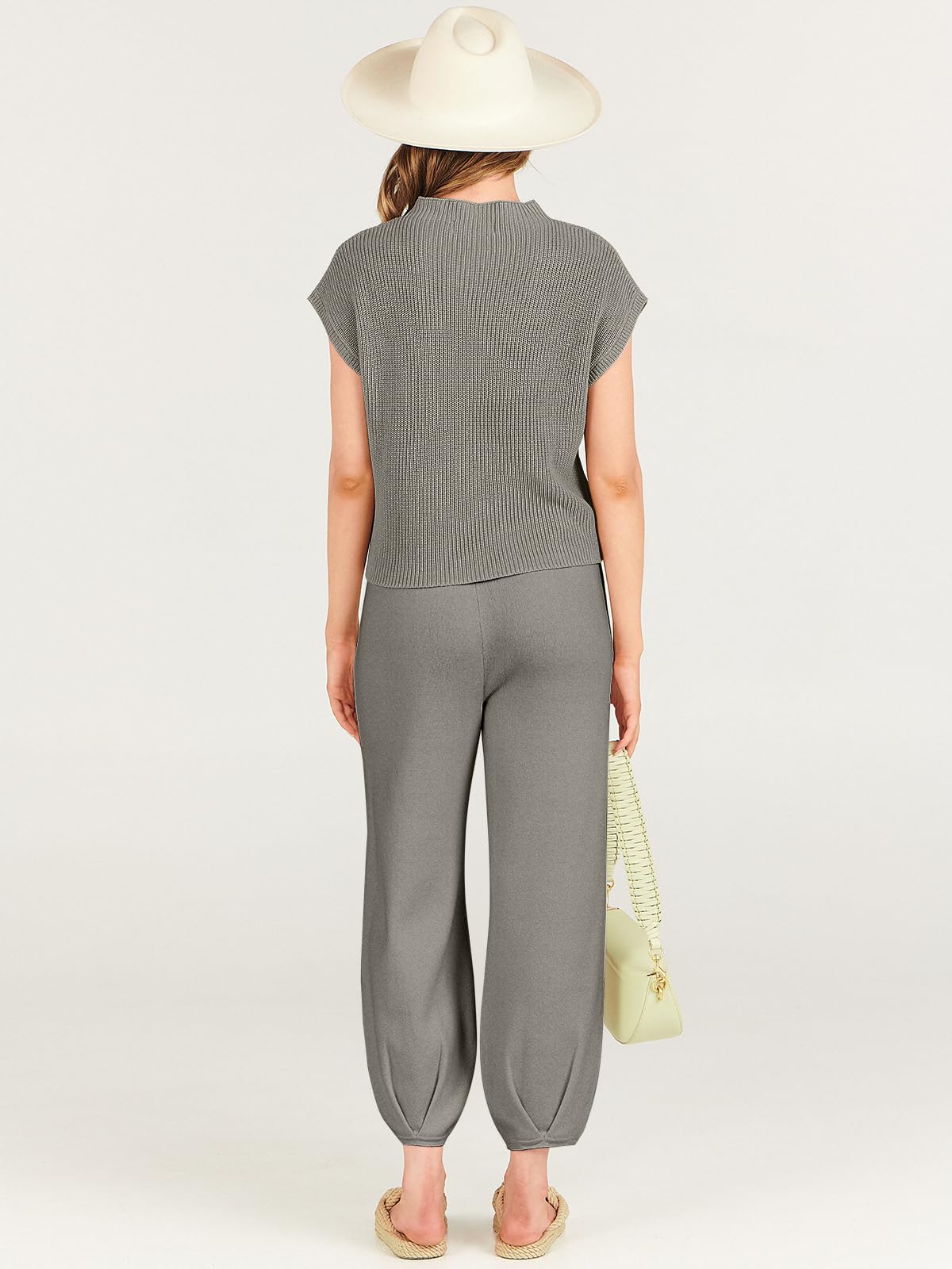 - Fashionable style - Flaunt your fashion statement with this stylish Two Piece Outfit, featuring a cap shoulder knit crop top and high waist taper knit pants for a trendy and chic look.