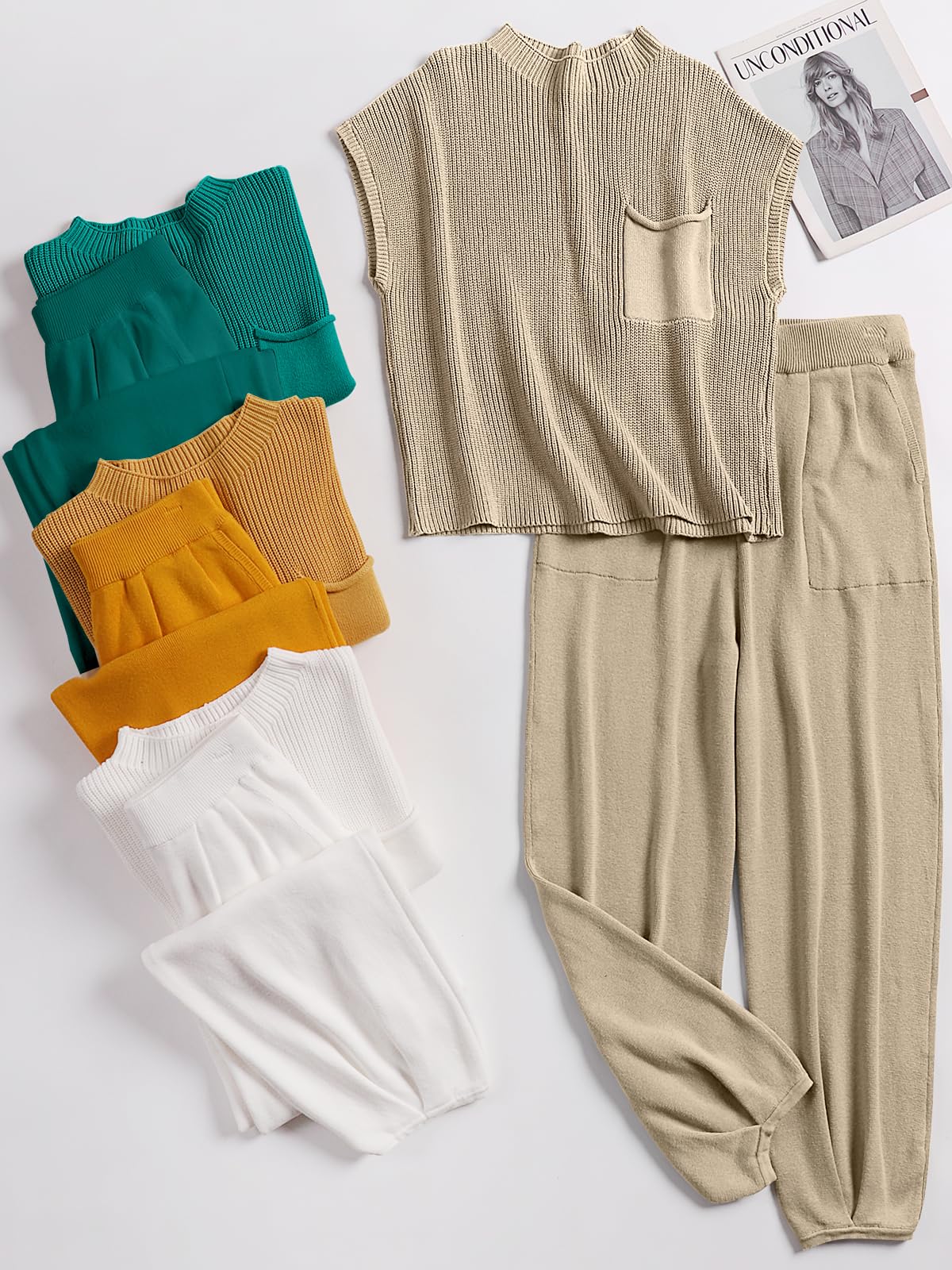 - Fashionable style - Flaunt your fashion statement with this stylish Two Piece Outfit, featuring a cap shoulder knit crop top and high waist taper knit pants for a trendy and chic look.