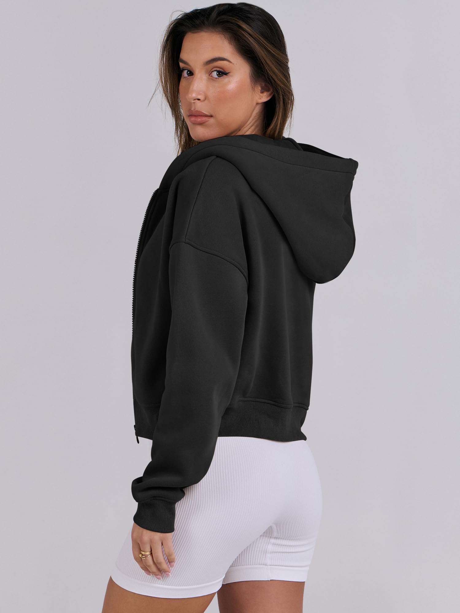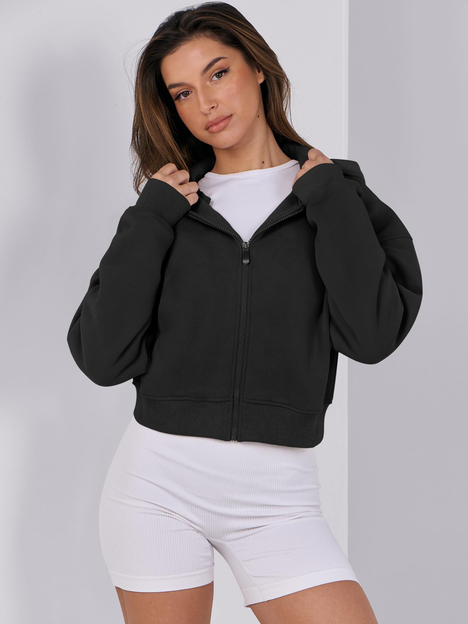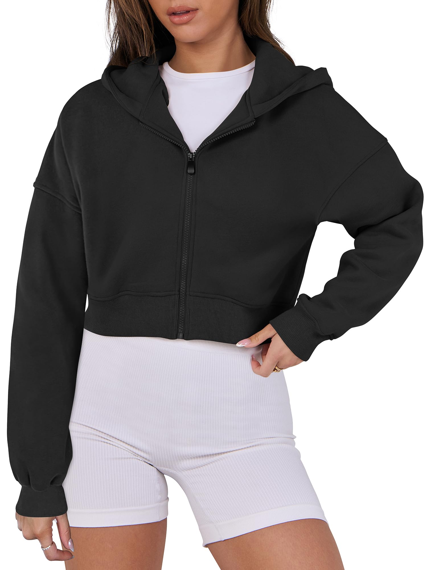 ANRABESS Womens Zip Up Crop Hoodie Sweatshirts 2024 Fall Trendy Long Sleeve Cropped Jacket Top Winter Teen Girls Clothes Black Medium