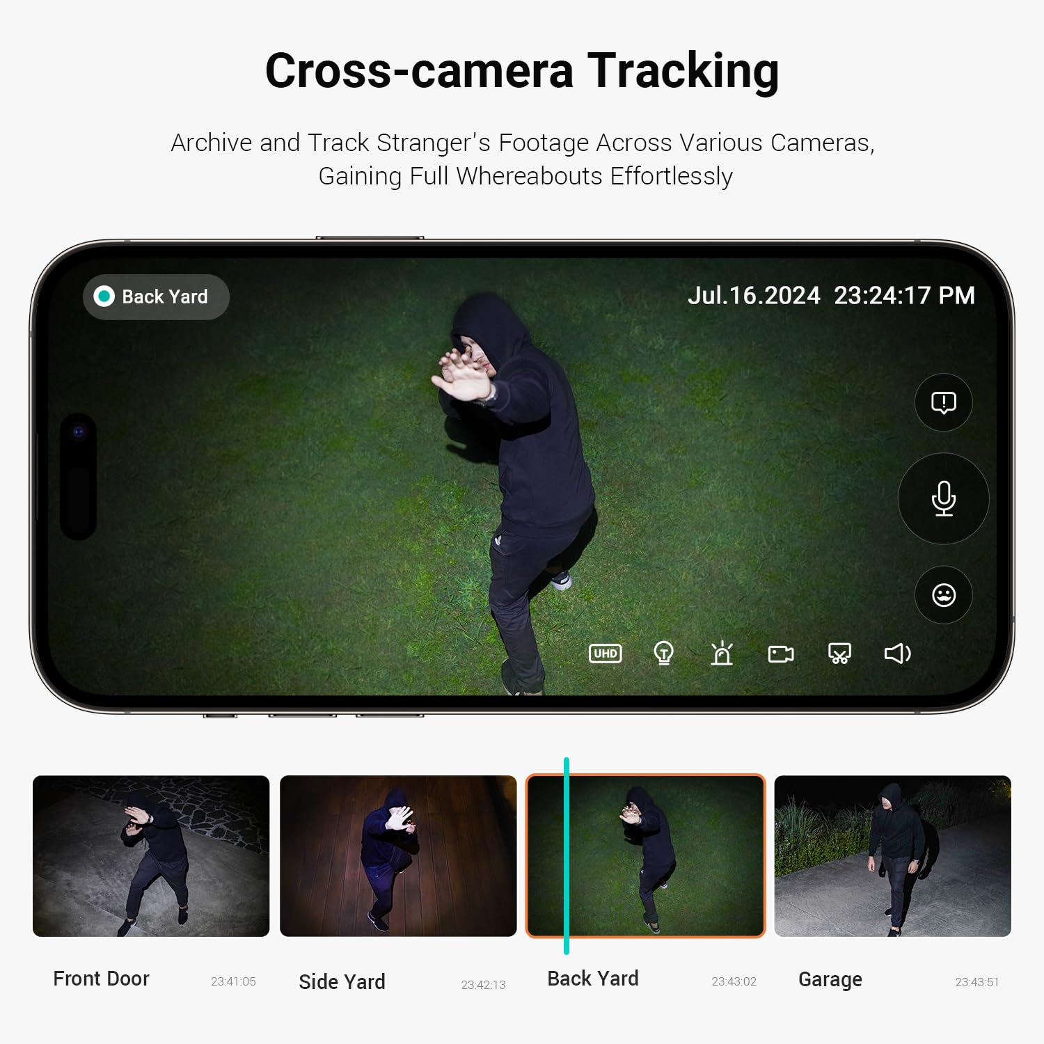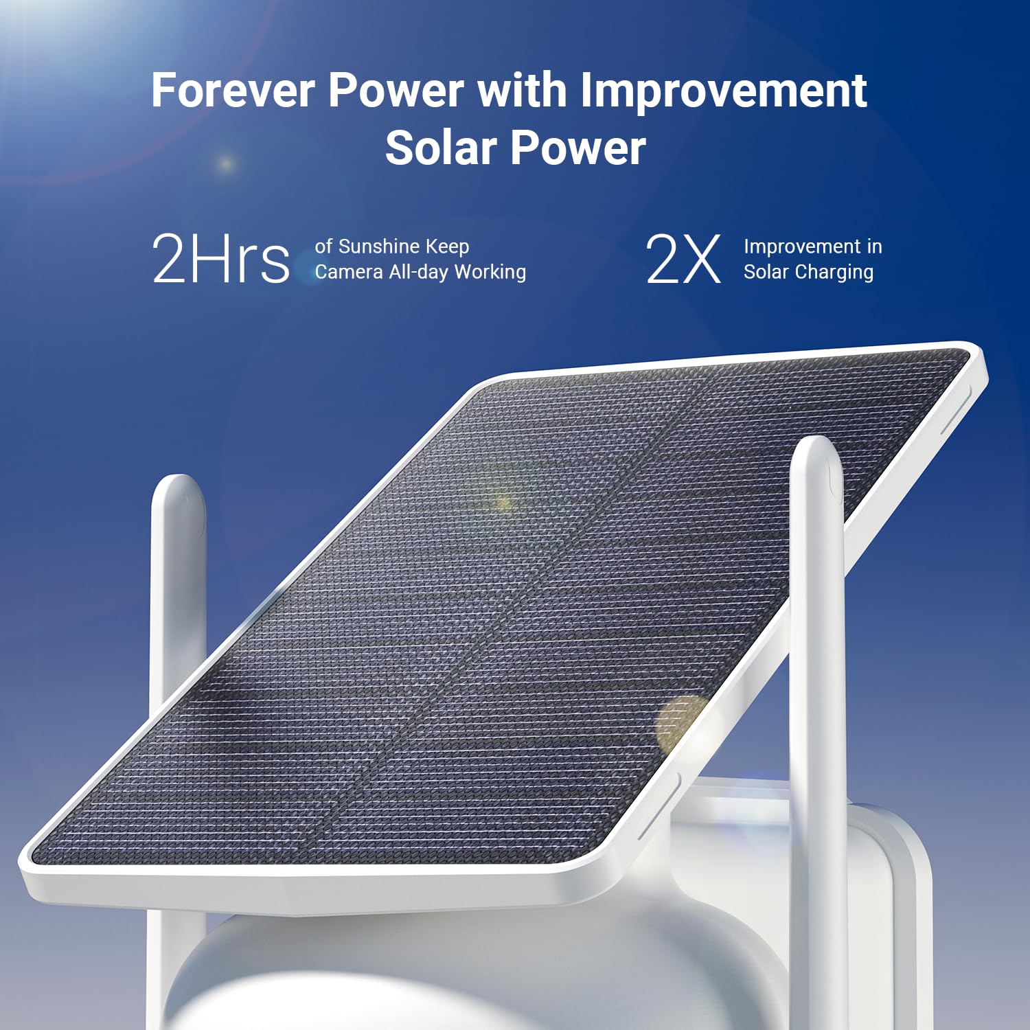 - 360° Coverage, Motion Tracking, Cross-Camera Tracking: The solar camera outdoor wireless provides more comprehensive security. 360° panoramic cameras easily monitor porches, yards, and driveways without blind spots; support auto motion tracking and activity recording of detected people, and also allow tracking and archiving of strangers' footage from several 360 camera, easy to get their complete whereabouts