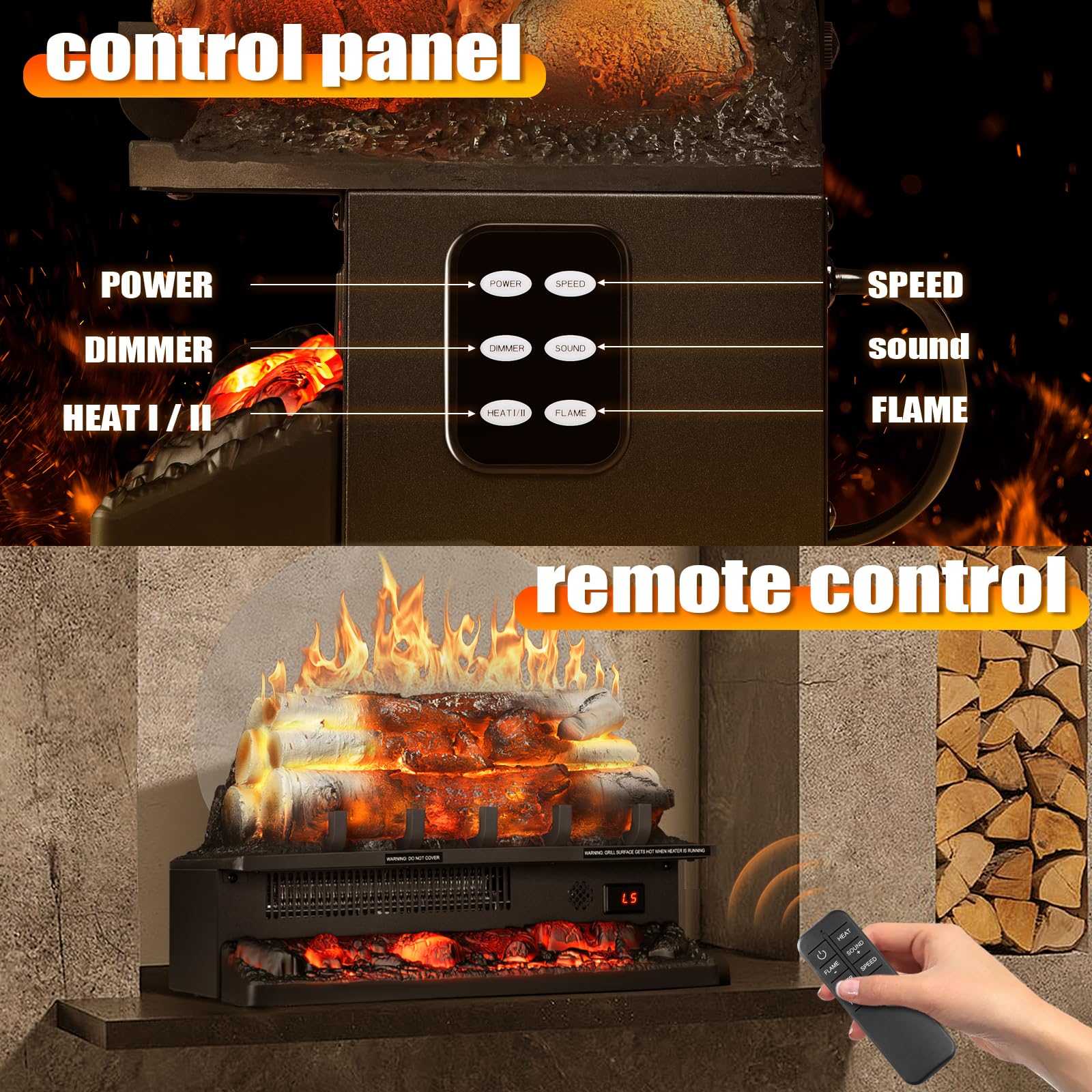 - Adjustable Brightness, Speed and Sound Effect:The electric log heater has 5 adjustable brightness levels, creating the effect of a rolling and realistic flame as you desired. There also has 3 sounds (charcoal burning, birds chirping and waves) can be chosen, which can delight the atmosphere in winter. It provides you supplemental zone heating for your bedroom, living room etc. to create a warm environment for your whole family. Free of chimney and ash.