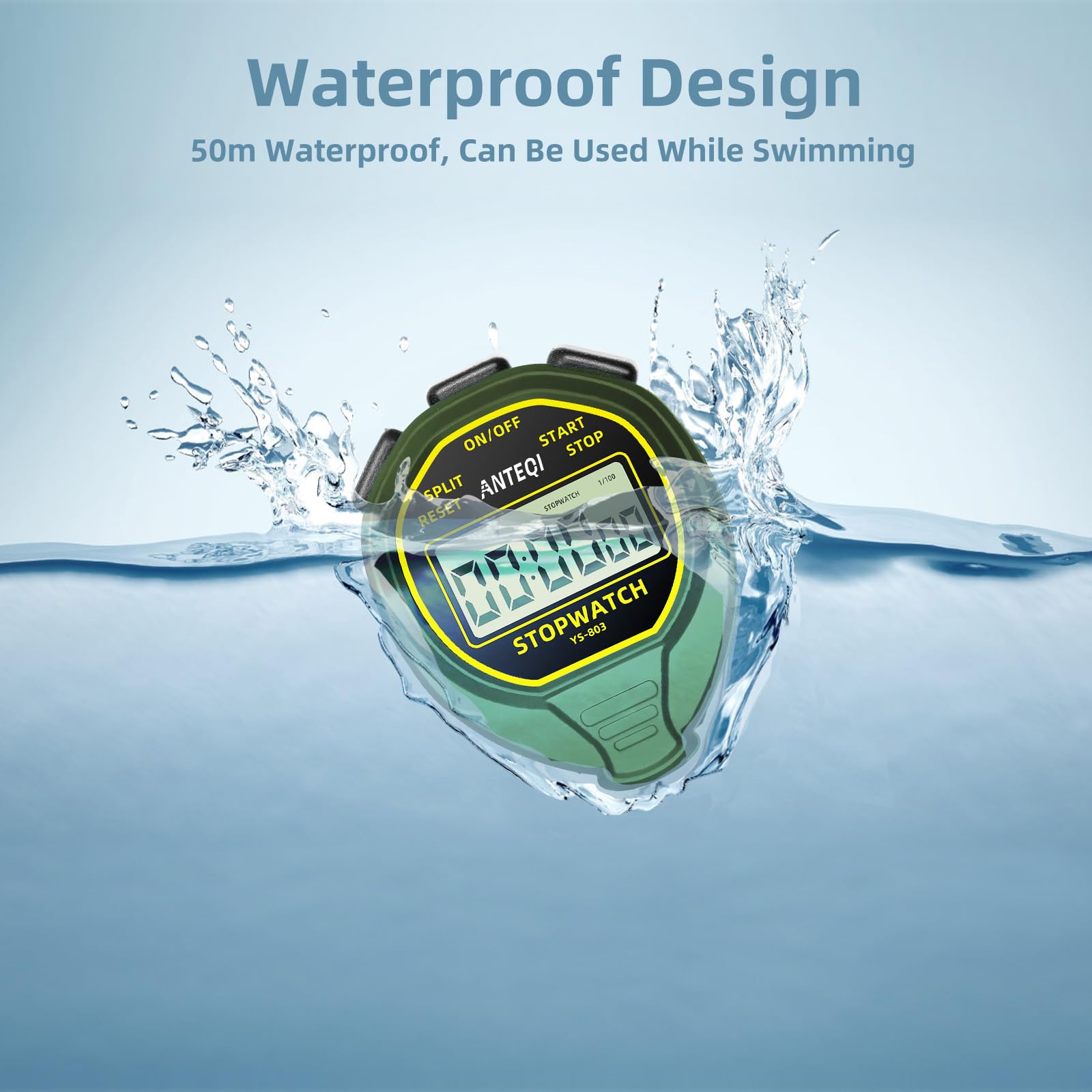 - Waterproof & Silent Stopwatches for Coaches - This stopwatch is waterproof to 50M and can be used in water and rain. Equipped with 47 inch lanyard (neck strap), Light weight, small in volume, geat handheld, easy to carry, It is a perfect equipment for coaches referee to make training like swimming running rugby basketball football and soccer etc