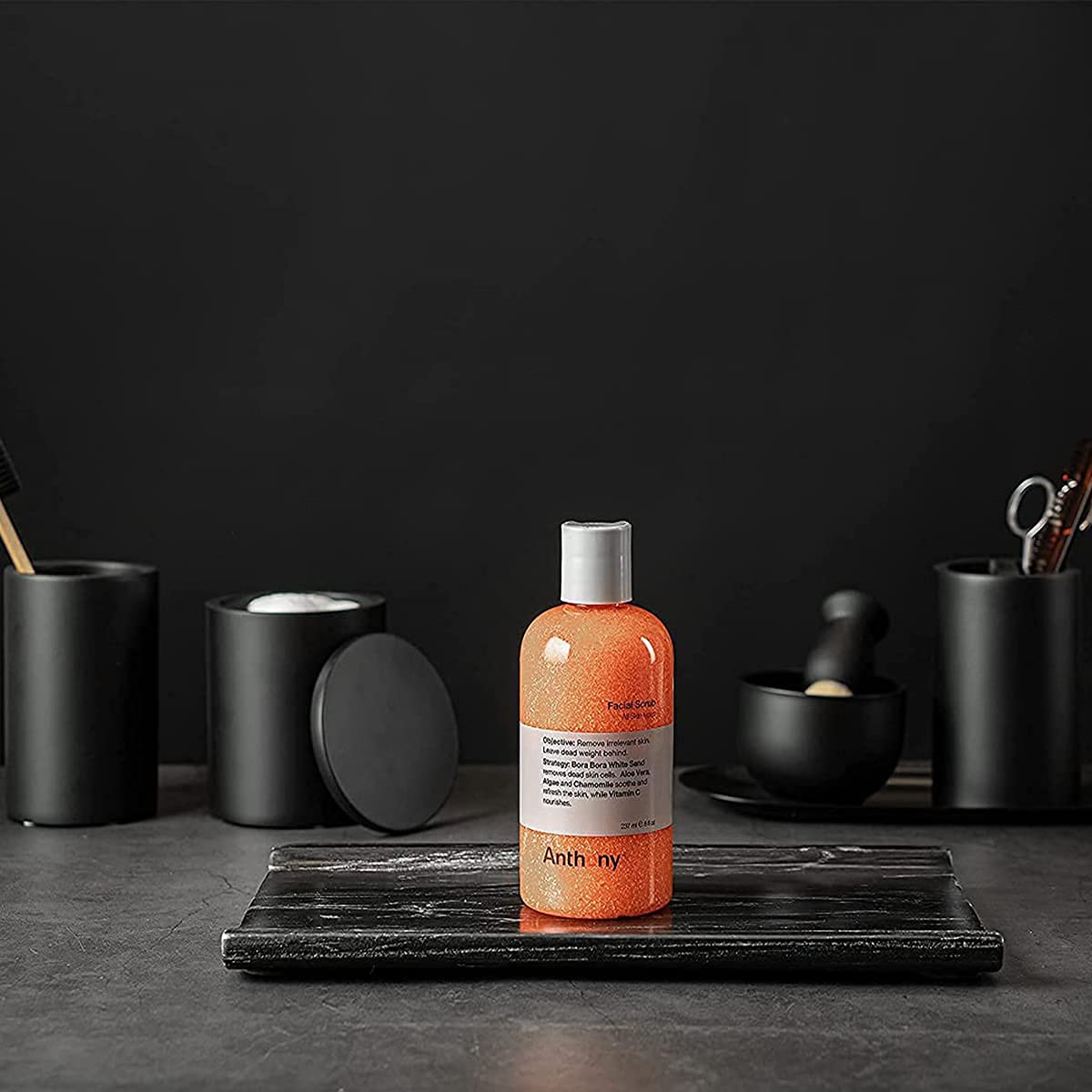 - Facial Scrub, 8 fl oz ℮ 237 ml, Scrubbing doesn’t have to be harsh. This gentle yet effective Facial Scrub exfoliates skin, removes grime, and helps get rid of ingrown hairs for a clean, even finish.