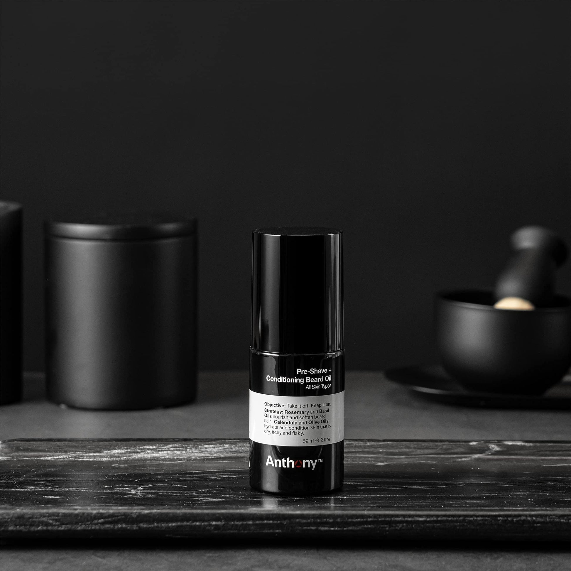 - STEP ONE Pre-Shave + Conditioning Beard Oil: For pre-shaving, rub a small amount of oil into palms, massage into face and follow with Anthony Shave Cream or Shave Gel. For beard grooming, apply a small amount of oil into palms, rub together and distribute evenly into your beard. Be sure to massage into skin as well. Use as needed.