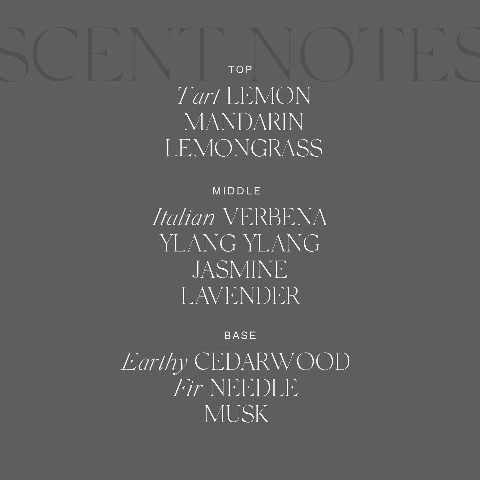 - Lemone Verbena e Cedro Invigorating notes of tart lemon orange and lemongrass mingle with notes of fresh Italian verbena