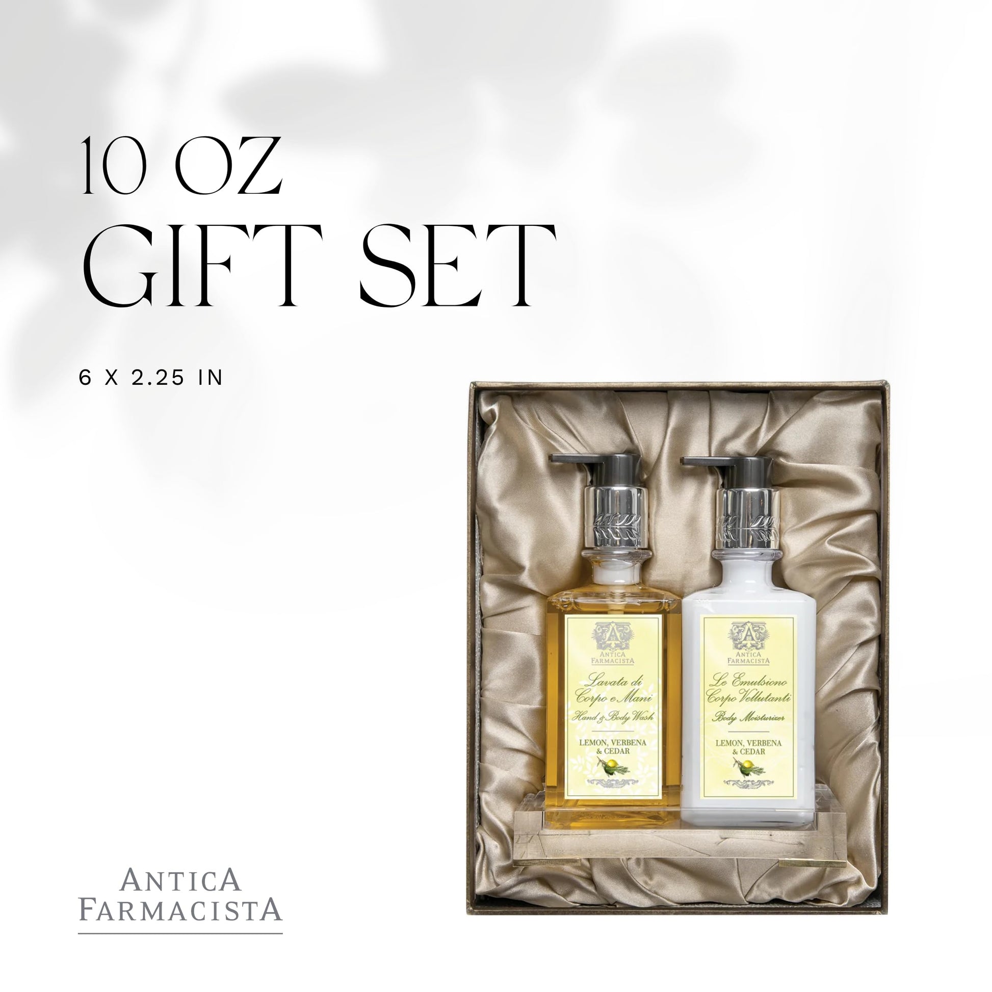 Antica Farmacista Acrylic Bath & Body Gift Set - Includes Body Wash, Body Moisturizer & Acrylic Tray - Holiday Body Care Gift Set for Women & Men - Lemon Verbena & Cedar