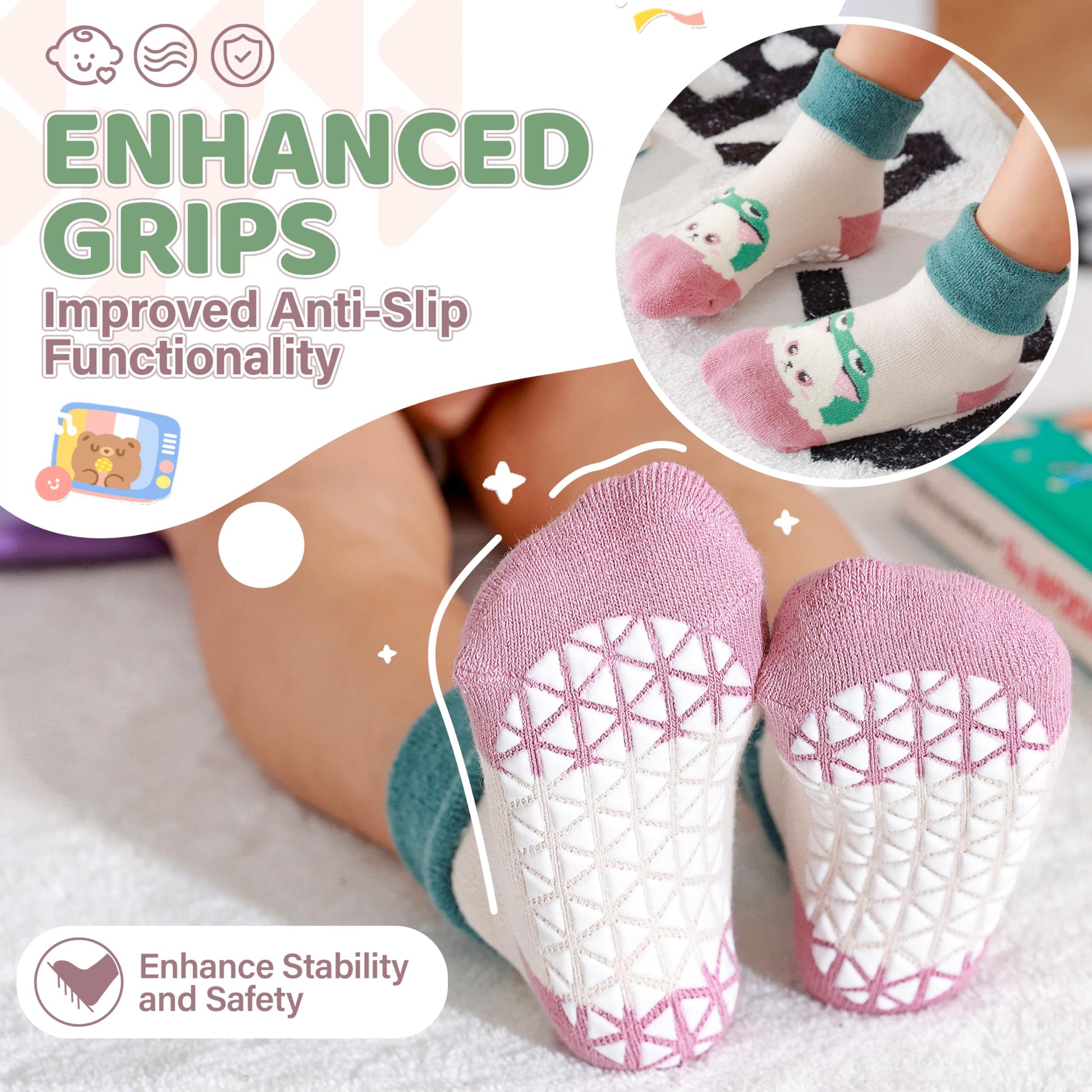 - Enhanced Safety with Fun: Our thick cotton socks offer a secure grip, ensuring your little ones stay steady on their feet. Perfect for active kids who love to play, run, scoot, and jump around the house. Ideal for those precious early steps and crawls.