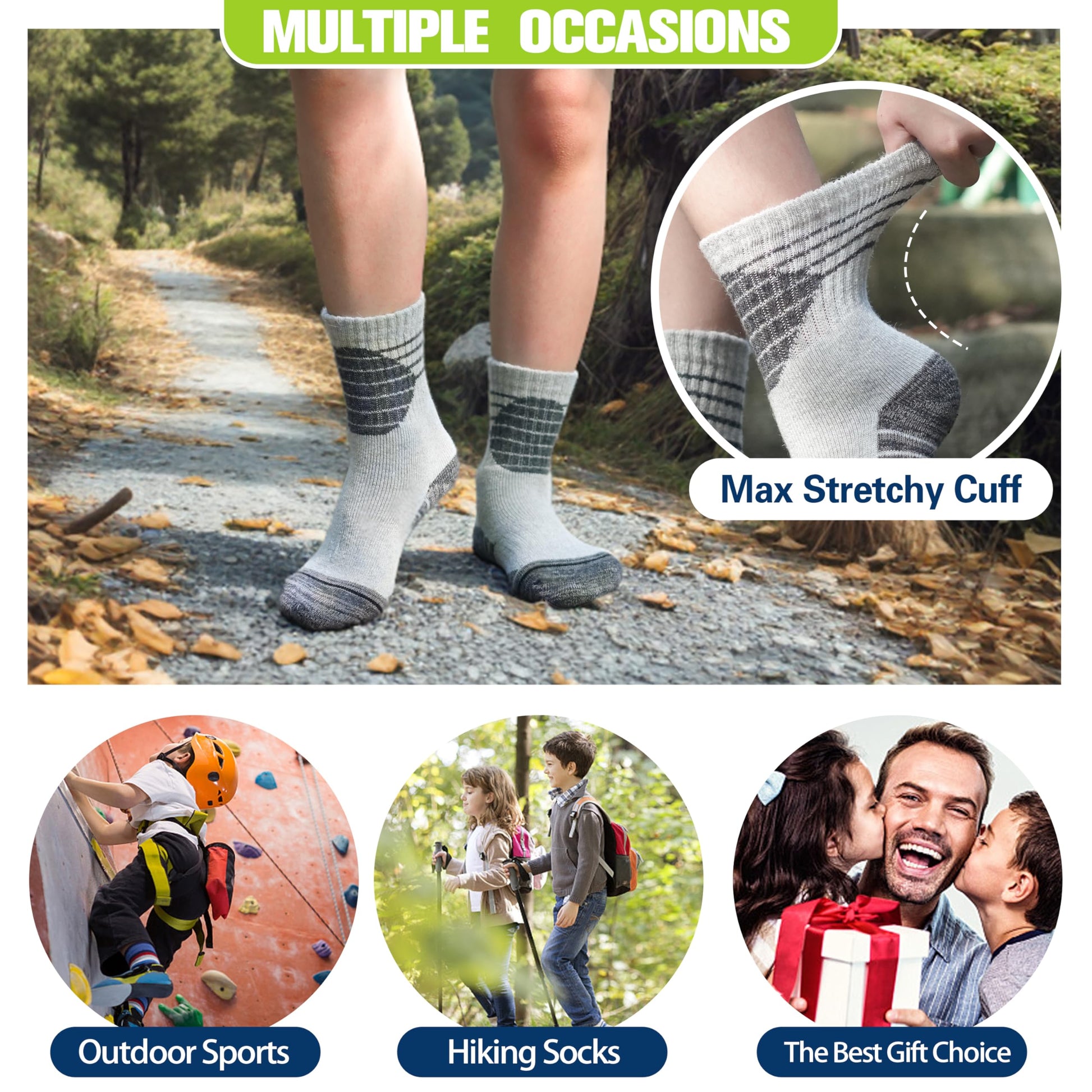 - GREAT GIFT CHOICE: ANTSANG wool hiking athletic socks are excellent gift options for kids. It will be a pleasant surprise as a birthday gift, Christmas gift, Children's Day gift, White Elephant Day gift, and more.