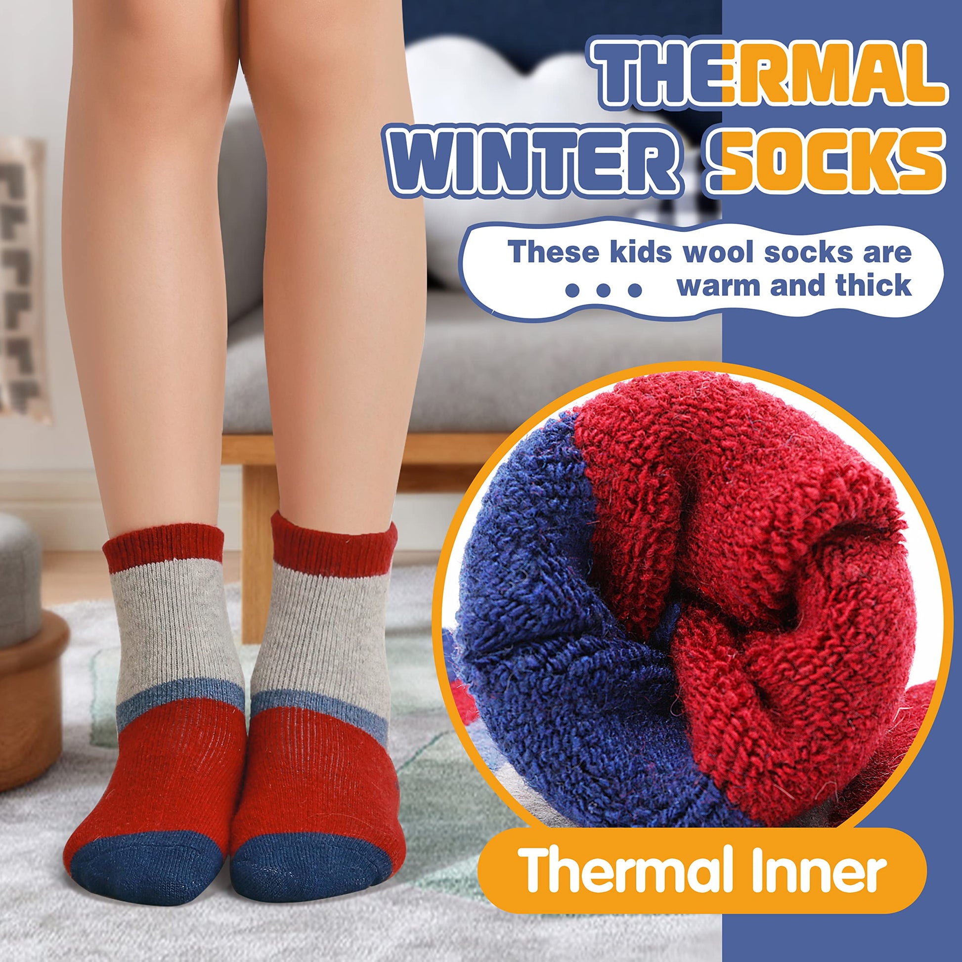 - SOFT & BREATHABLE & COZY : The materials for this stylish kids wool socks are very comfortable and soft, special fuzzy inner design will keep the feet warm, the soft and thicken fabric will keep children's feet feel comfortable all the day, no any itching issue, It's a perfect wool socks for boys, girls or toddlers.