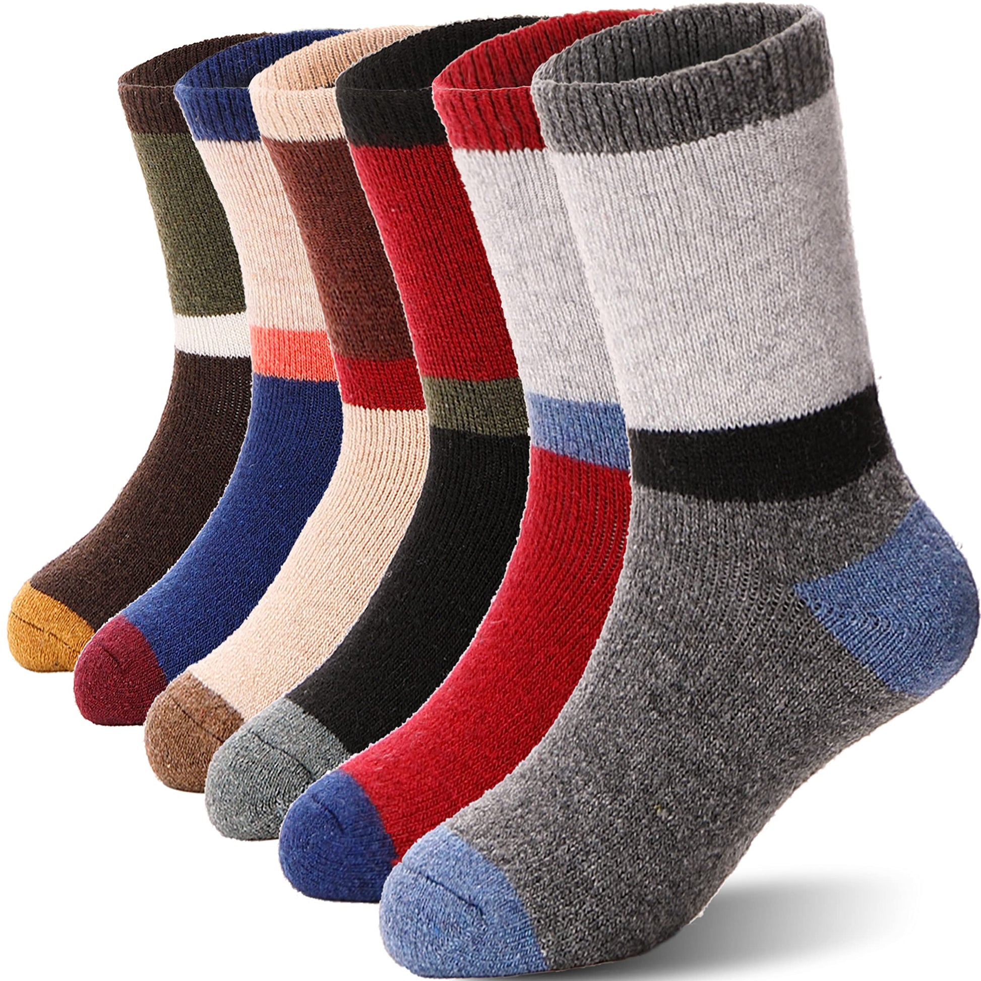 ANTSANG Kids Wool Hiking Socks Toddlers Boys Girls Warm Thick Thermal Crew Boot Heavy Cozy Snow Cabin Winter Gift Snowboarding Socks 6 Pairs(Color Striped D,4-7 Y)