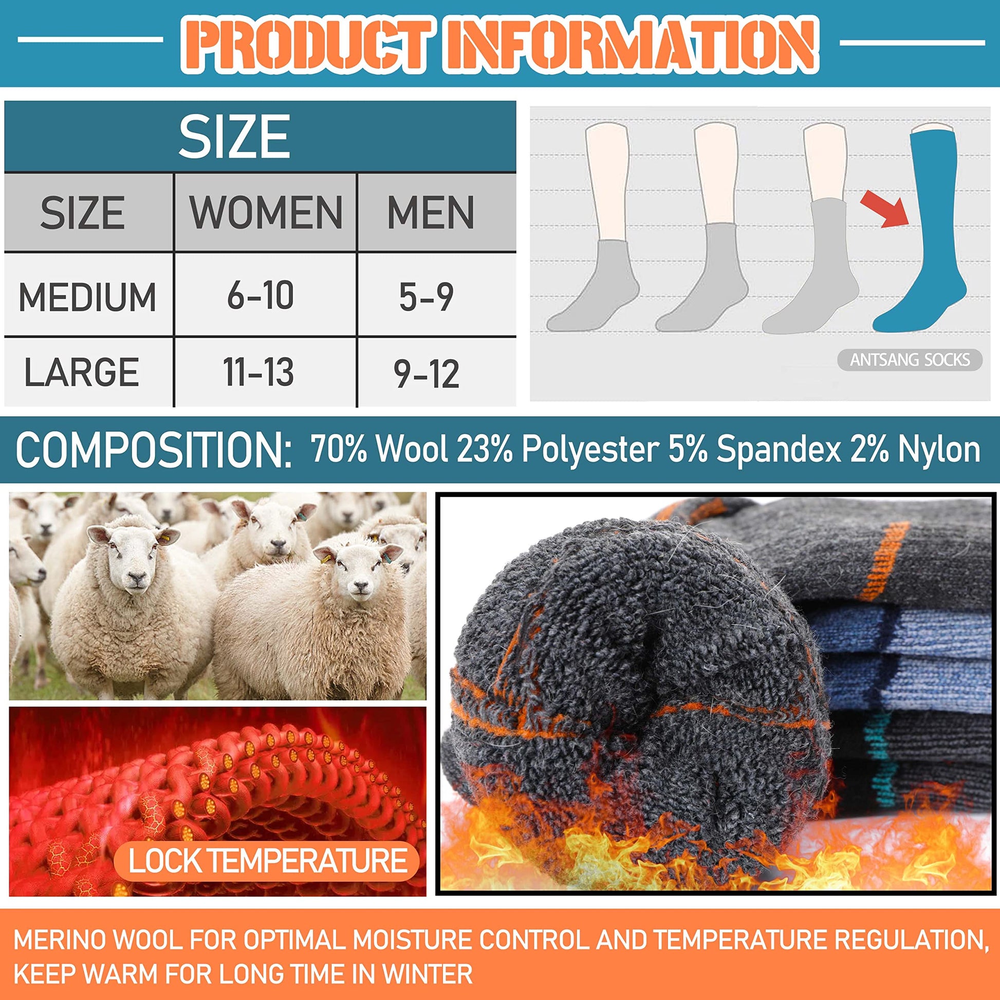 - 🎁 GREAT GIFT CHOICE : ANTSANG merino wool socks are best present options for mens and womens . They will be a surprise for your loved ones as birthday gift, Christmas gift, Father’s Day gift, Mother’s Day gift, Valentine’s Day gift, White Elephant Day gift,etc.
