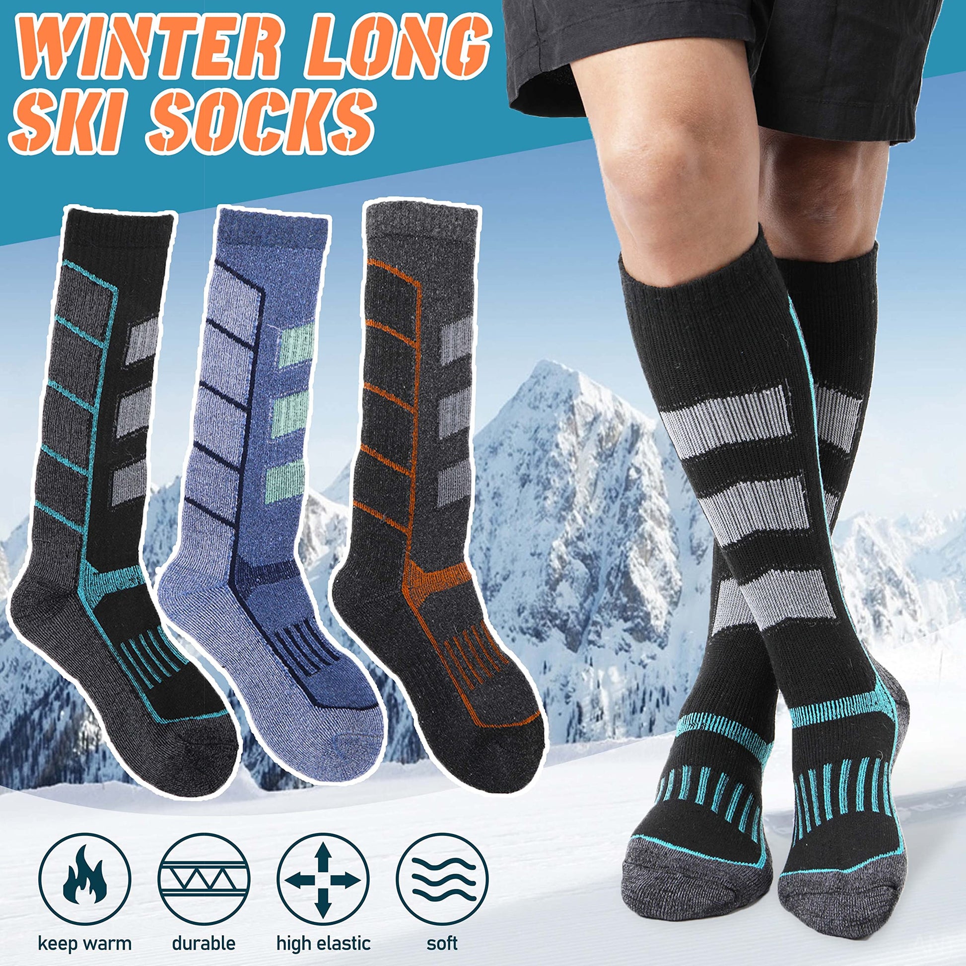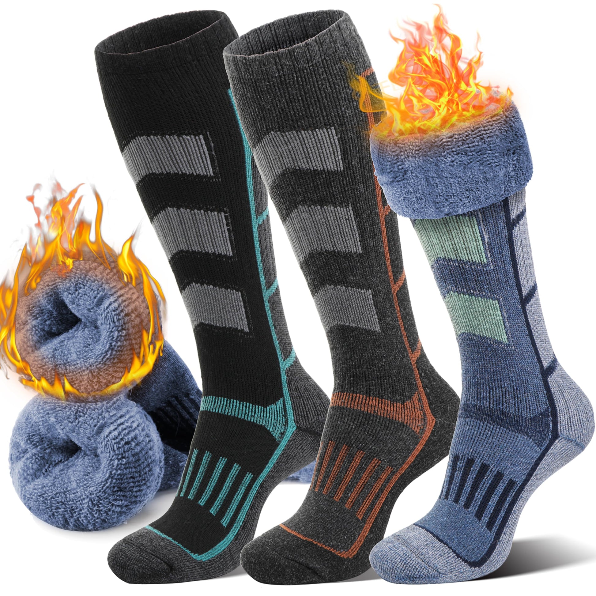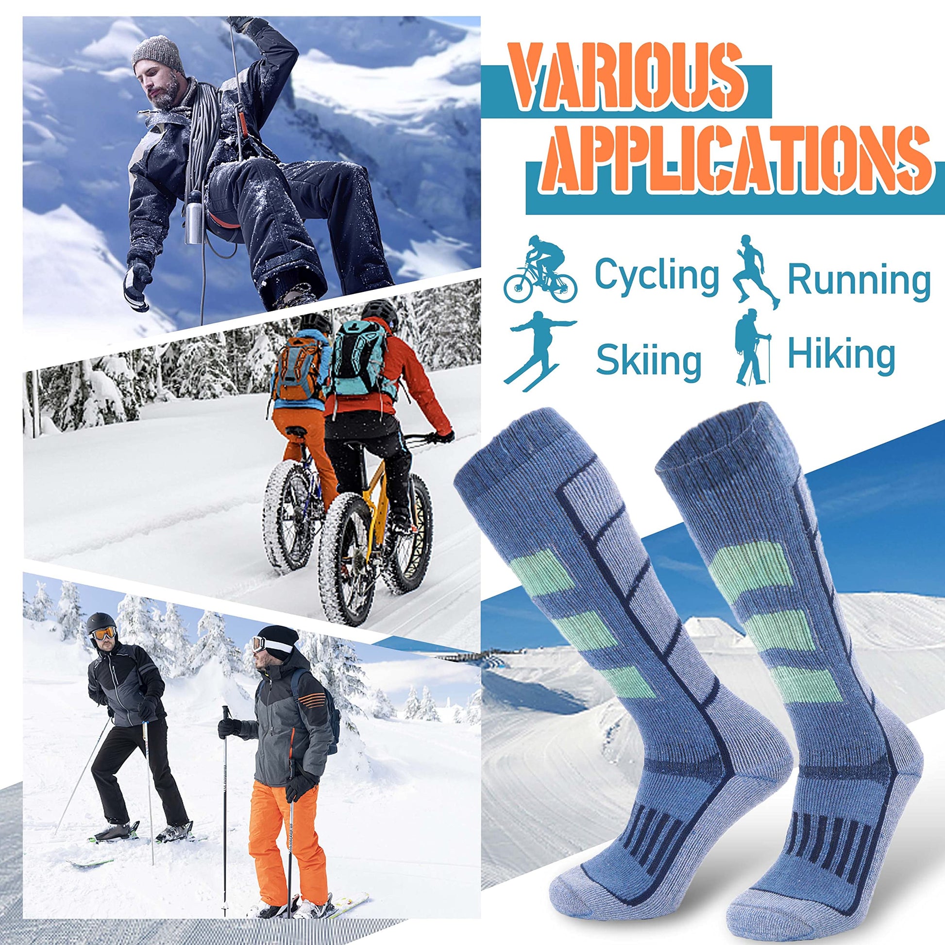- ⛷️PROTECTION FOR FEET : Thicken warm fuzzy inner can warm up your feet for long time in winter and provide you comfortable feeling, Full cushioning of these merino wool ski socks has better shock absorption and reduces the foot soreness. Engineered heel and seamless toe do not grind your feet and avoid blisters, providing the most comprehensive protection for your feet.