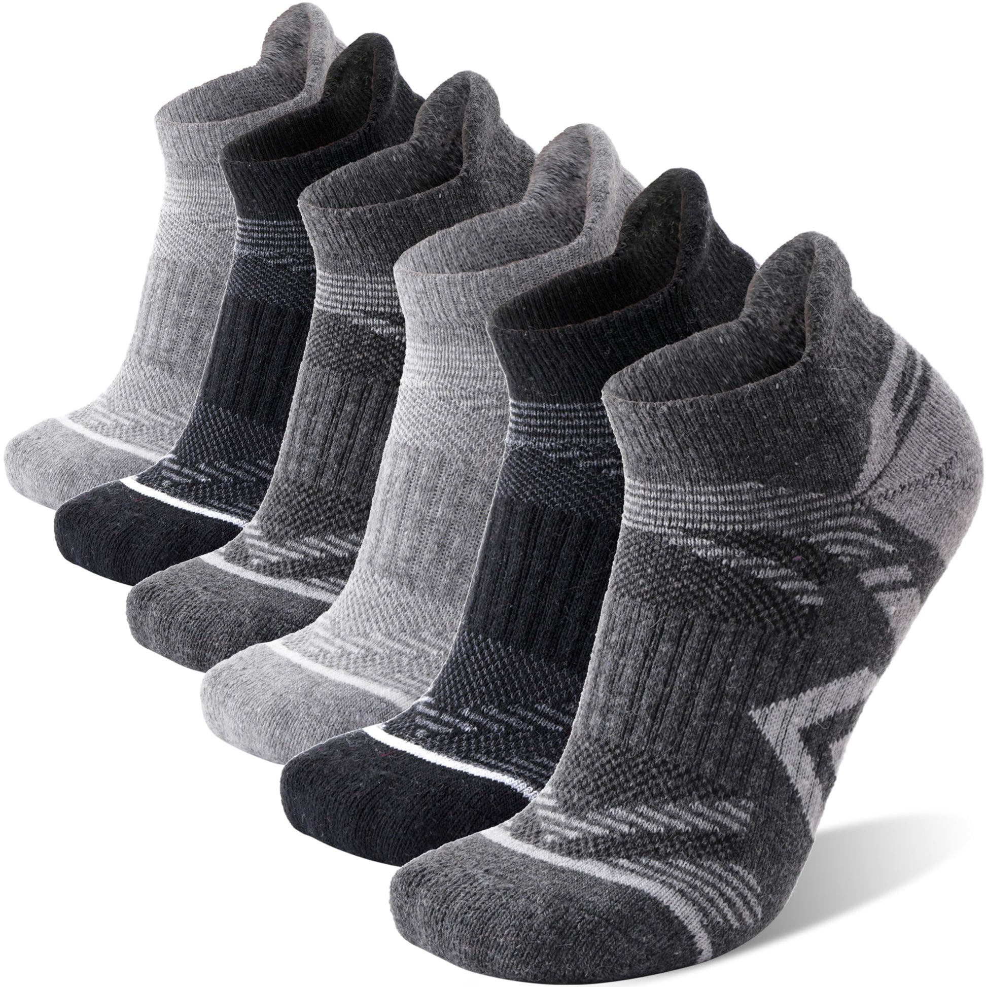 ANTSANG Merino Wool Ankle Hiking Socks Compression Warm Thermal Thick Cushion Winter Running No Show Moisture Wicking Socks Gifts Stocking Stuffers for Women Men 6 Pairs(Black Grey,L)