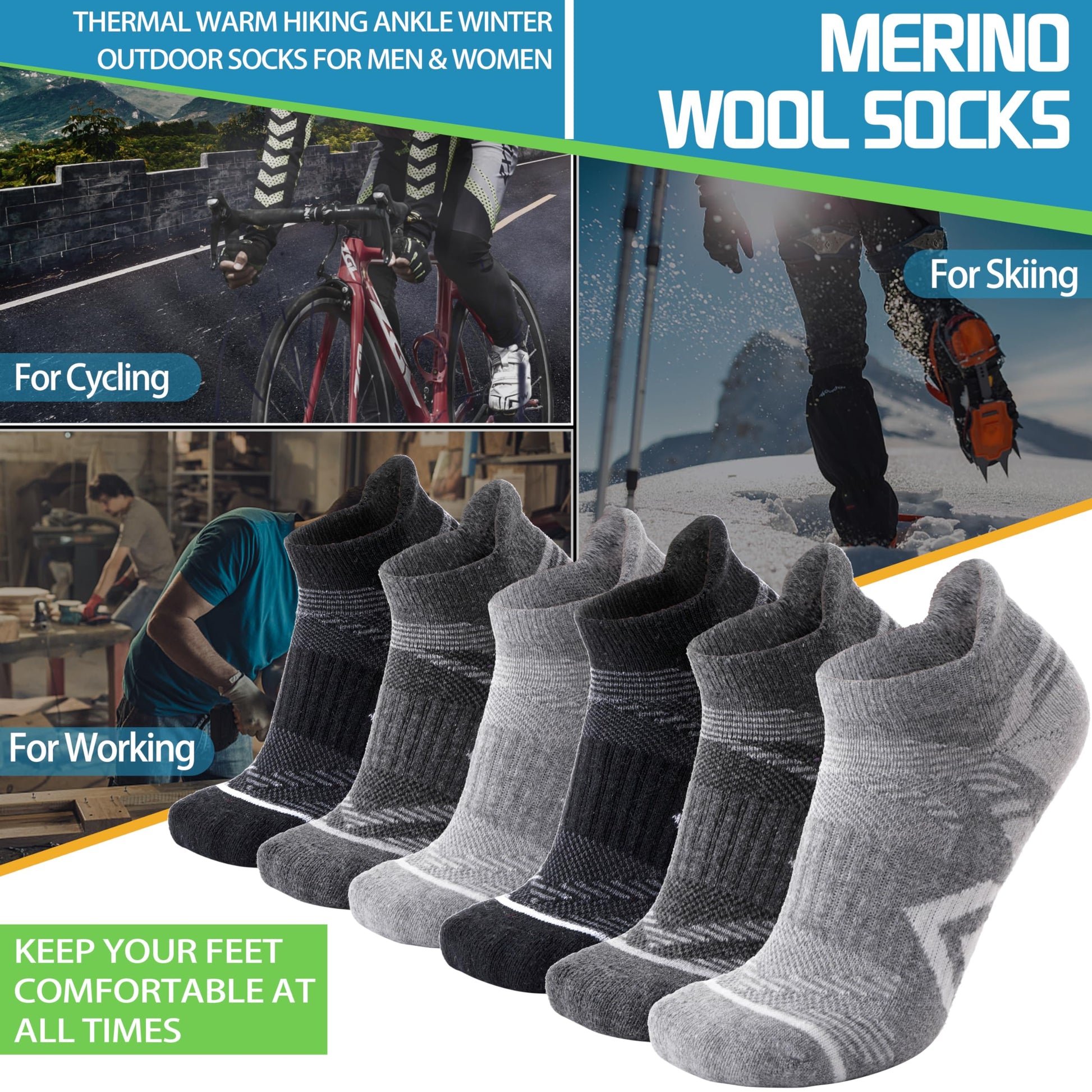 - š PACKAGE & SIZE : There are 6 pairs merino wool ankle socks for mens and womens. We offer 2 sizes as options, M & L .Size M fits for US menās shoe size 6-8.5 / womenās shoe size 5.5-10.Size L fits for US menās shoe size 8.5-12 / womenās shoe size 10-13. WARM TIPS : Pilling and wool on socks are normal.