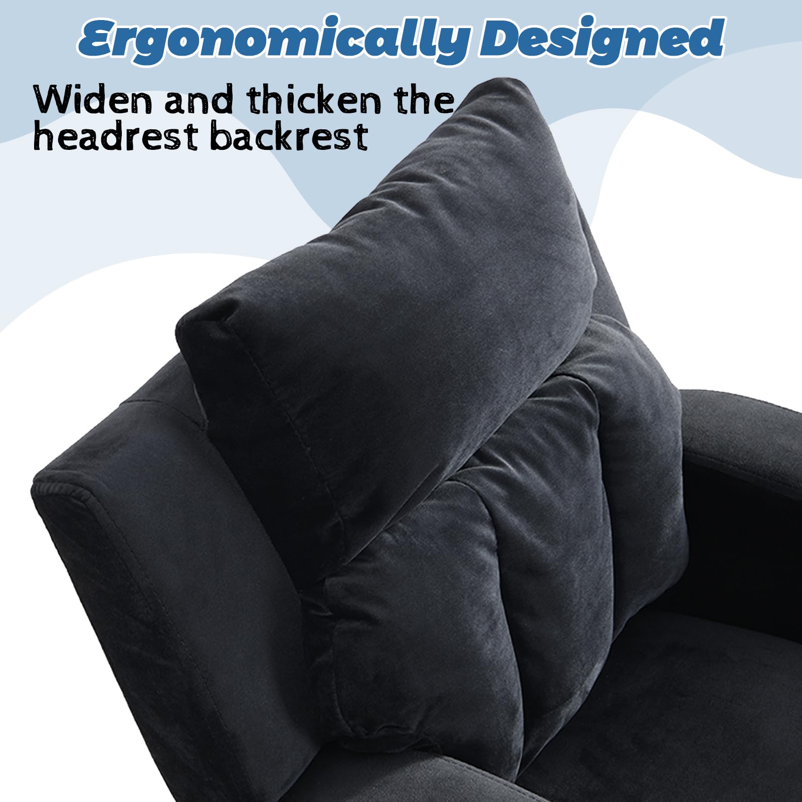 Anwick 2-in-1 Kids Recliner Chair with Cup Holder, Velvet Upholstered Single Sofa with Adjustable Footrest & Backrest, Toddler Recliners for Boys and Girls (Black)