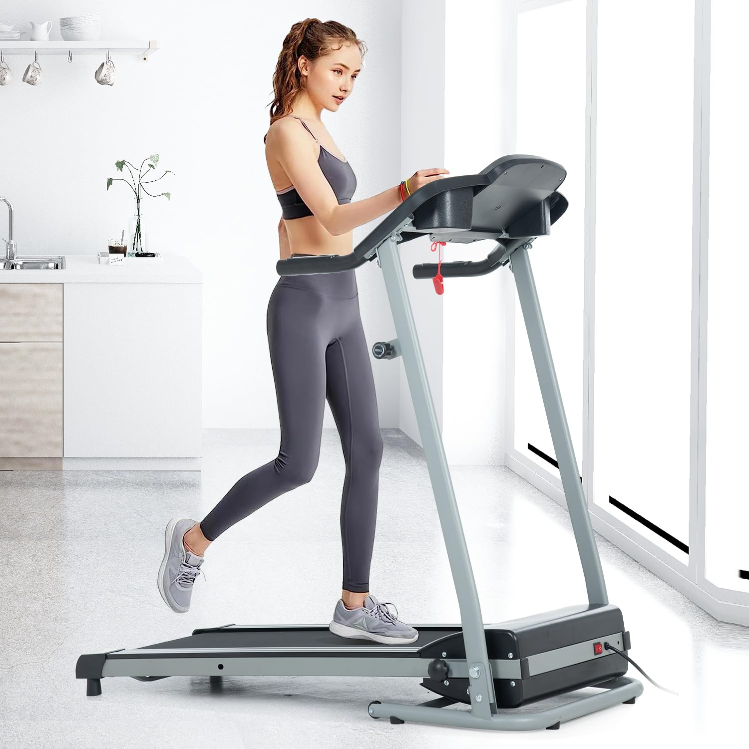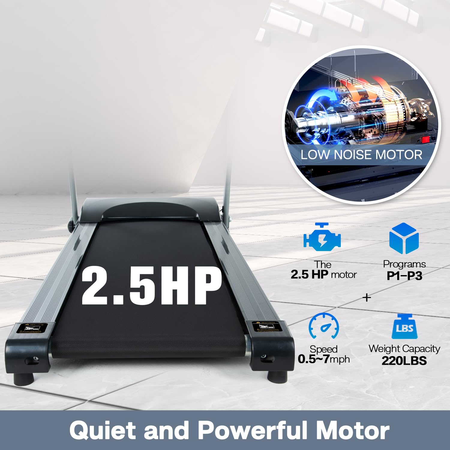 Anwick Treadmill, Metal M1: Foldable Home Treadmill, 2.5HP, 7.5MPH, 5" LCD, 250LB, Black, 12 Programs, Metal Frame, Hydraulic Rod Mechanism