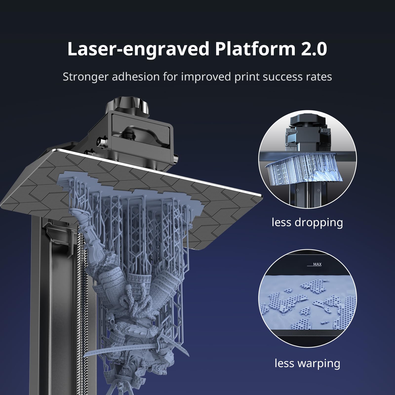 - 【Designed for Stable Printing】With a re-engineered build platform and redesigned laser-engraved patterns, this generation of build platforms provides just the right amount of adhesion to mitigate model lifting and warping during printing while keeping the removal process simple and smooth, ensuring a more stable printing result
