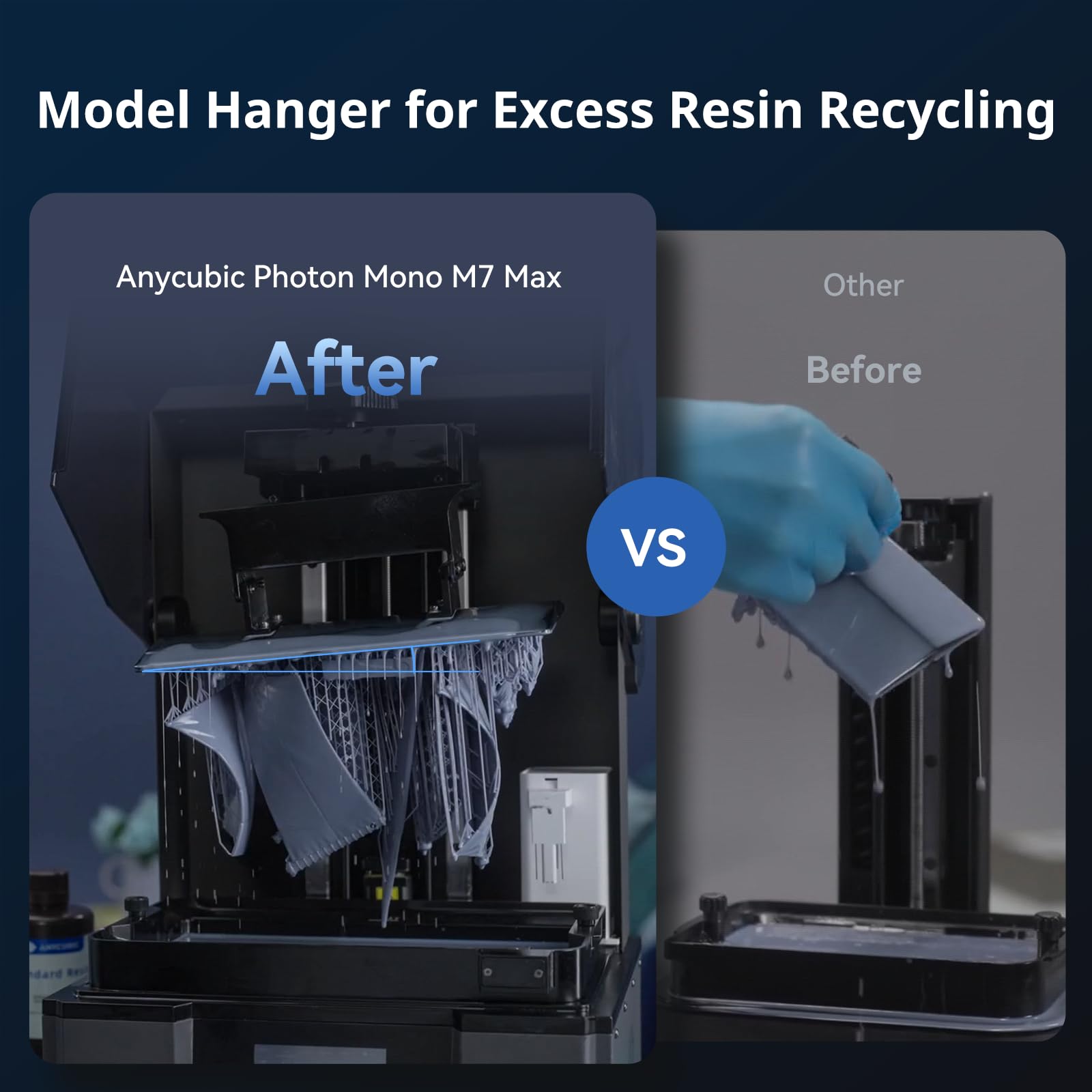 - 【User-Friendly Improvements】After printing is completed, the model can be suspended above the platform with a small angle, allowing the resin to flow back into the resin vat. And a bigger resin vat with 1300ml volume for large models