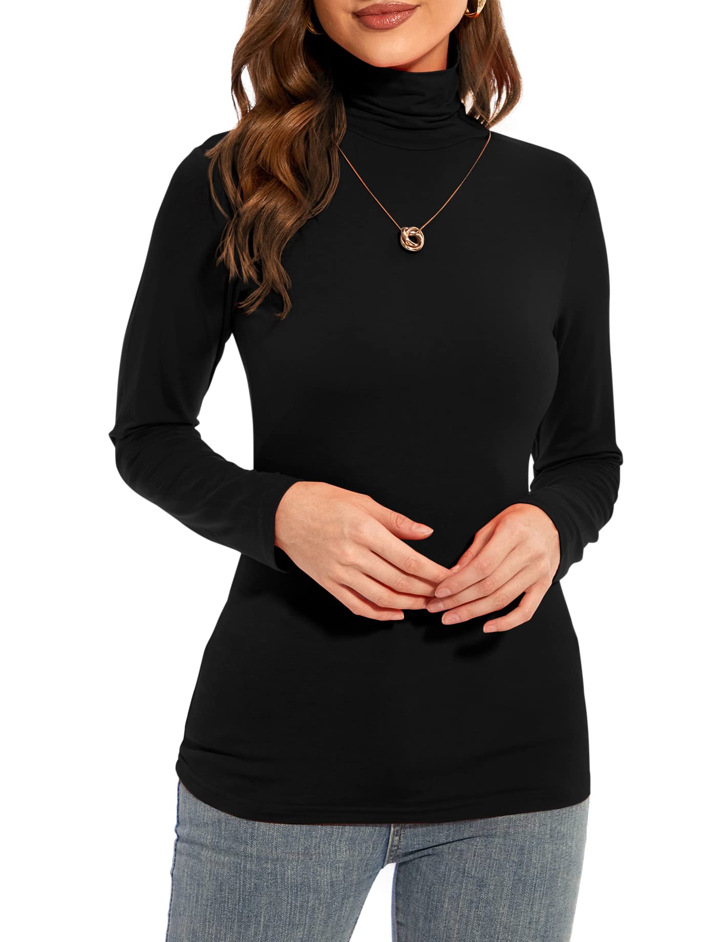 Anyeager Black Turtleneck for Women Dark Academia Clothing Turtle Neck Long Sleeves for Women Thermal Shirts for Women Medium