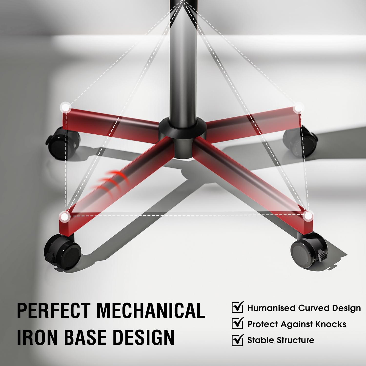 - Space Saving Base Design: The long front and short back base design increases the overall stability of this rolling TV stand, reduces the risk of tipping forward and keeps it closer to the wall, which won't take up too much space, it's a good choice to put it behind the TV stand. Curved steel tube design and softer lines make this TV stand more beautiful and increase safety