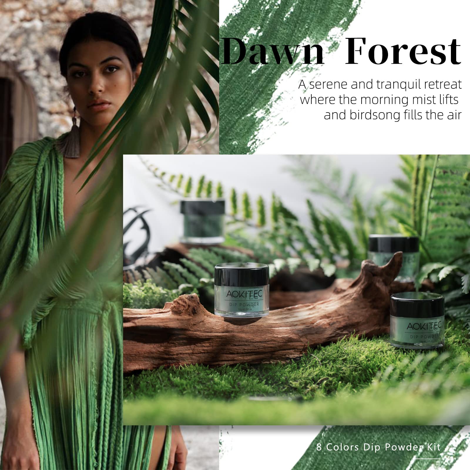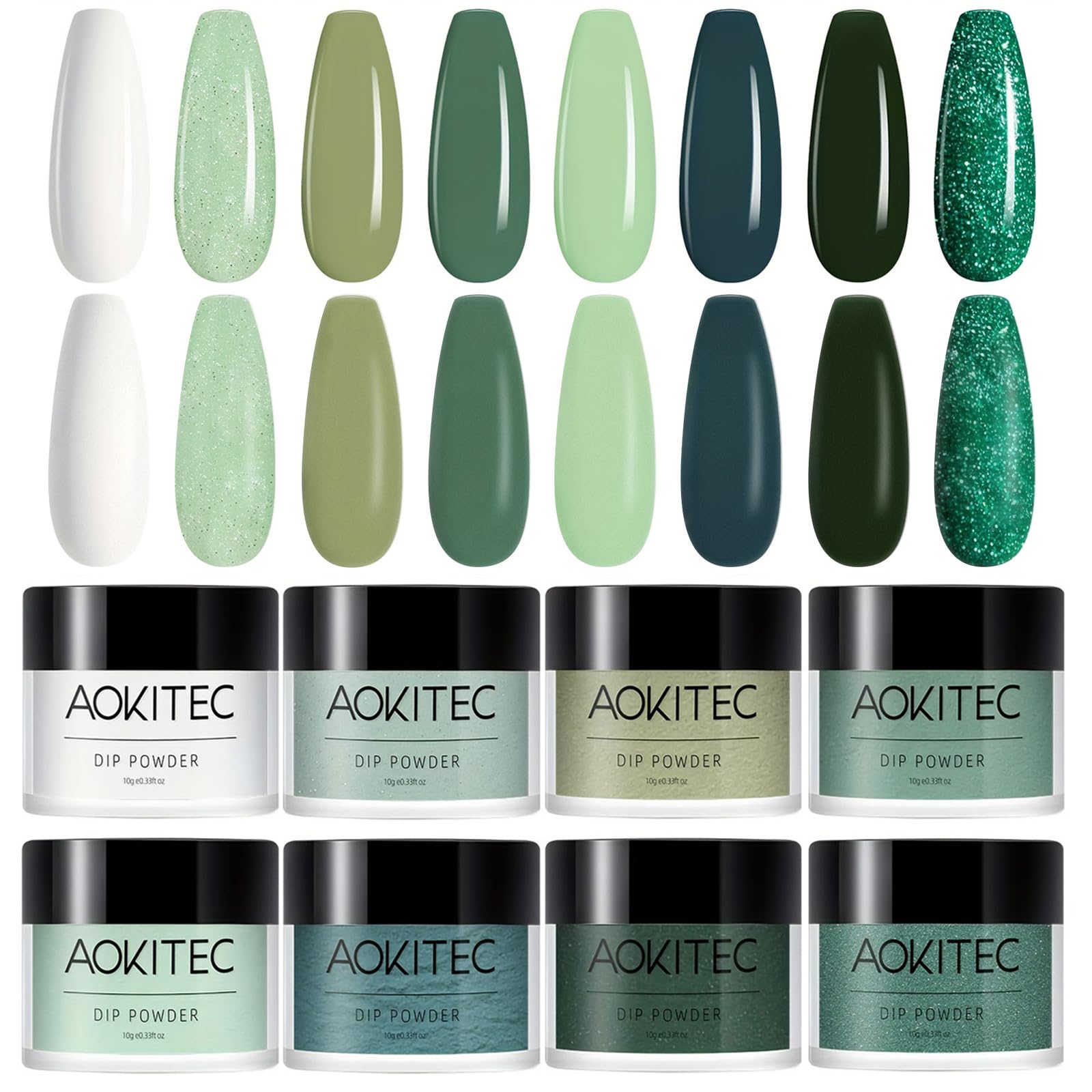 Aokitec 8 Colors Dip Powder Nail Set, Mermaid Lagoon Dark Green Collection Glitter Pastel Dipping Powder Starter Kit French Nail Art Manicure DIY Salon Home Gifts for Women, No Need Nail Lamp Cured